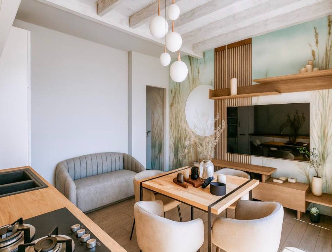 L'immobile, totalmente ristrutturato internamente ed esternamente pari al nuovo, caratterizzato da una particolare cura nell'estetica ed stato rifinito con ottimi materiali quali infissi ad alta efficienza termo-acustica, pavimentazione in gres porcellanato effetto legno, soffitto in legno lamellare con travi a vista, riscaldamento a pavimento alimentato da pompa di calore ad alto risparmio energetico, impianto di climatizzazione caldo/freddo, box doccia in cristallo, videocitofono a colori e tapparelle elettriche.