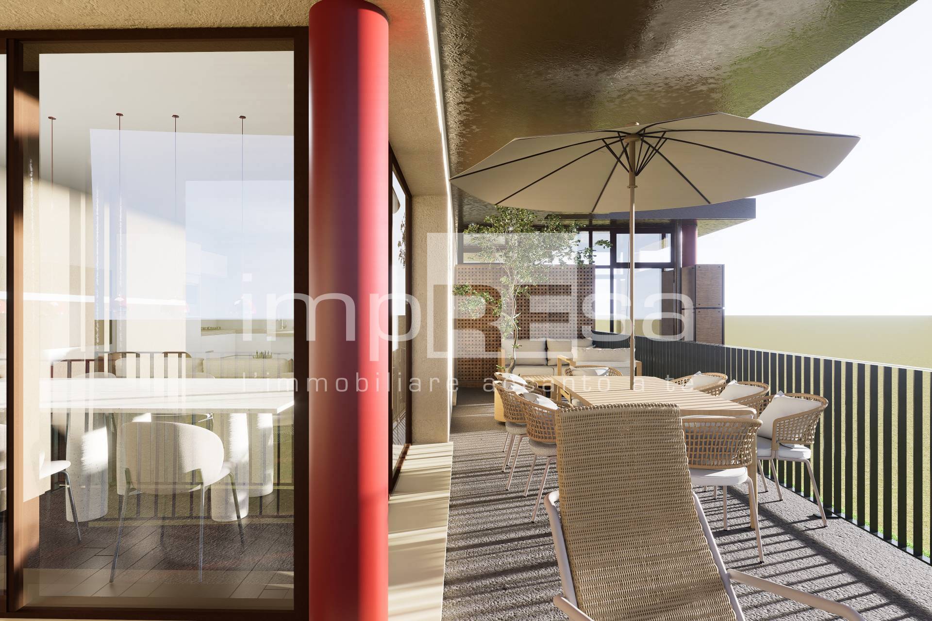 Lo sfogo su un terrazzo abitabile molto grande che permette di godere lo spazio esterno.