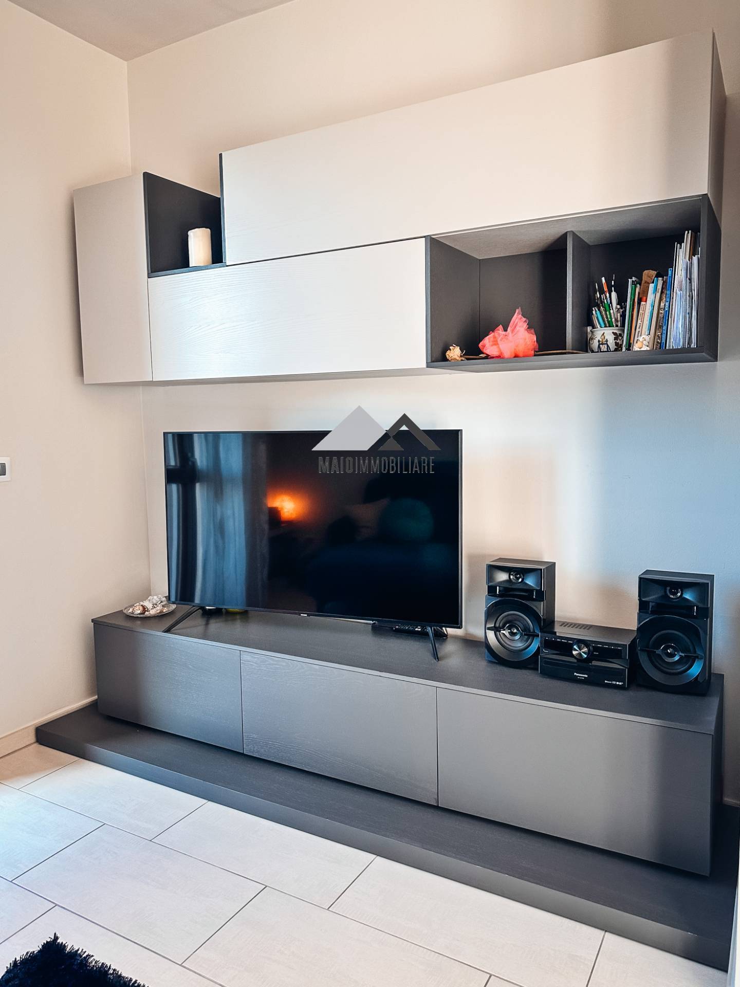 L'appartamento si sviluppa su un unico piano ed composto da: ingresso che si apre su un ampio e accogliente soggiorno, illuminato da una grande vetrata che si affaccia sul balcone, la cucina abitabile, spaziosa e funzionale, dispone di tutti gli elettrodomestici necessari.