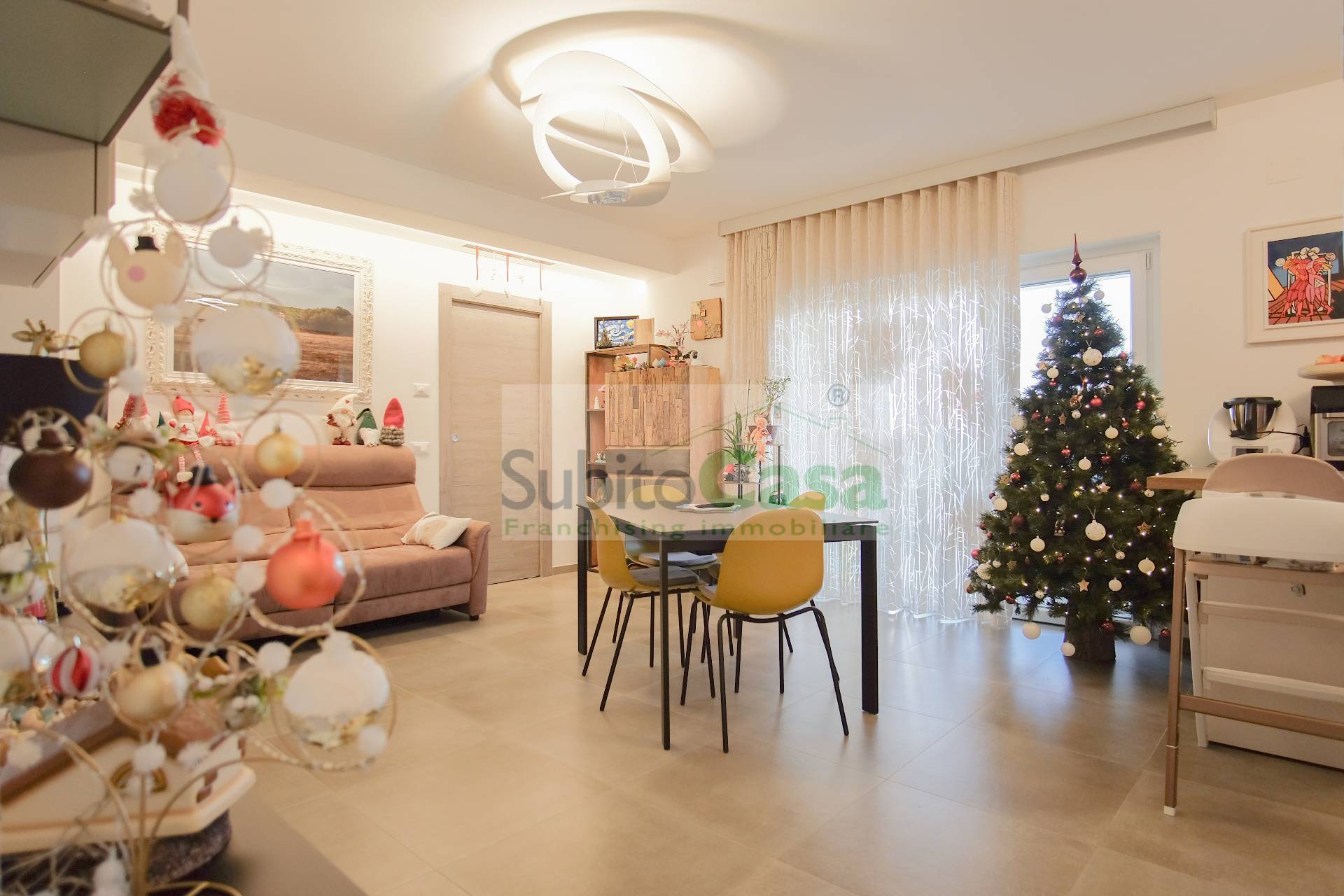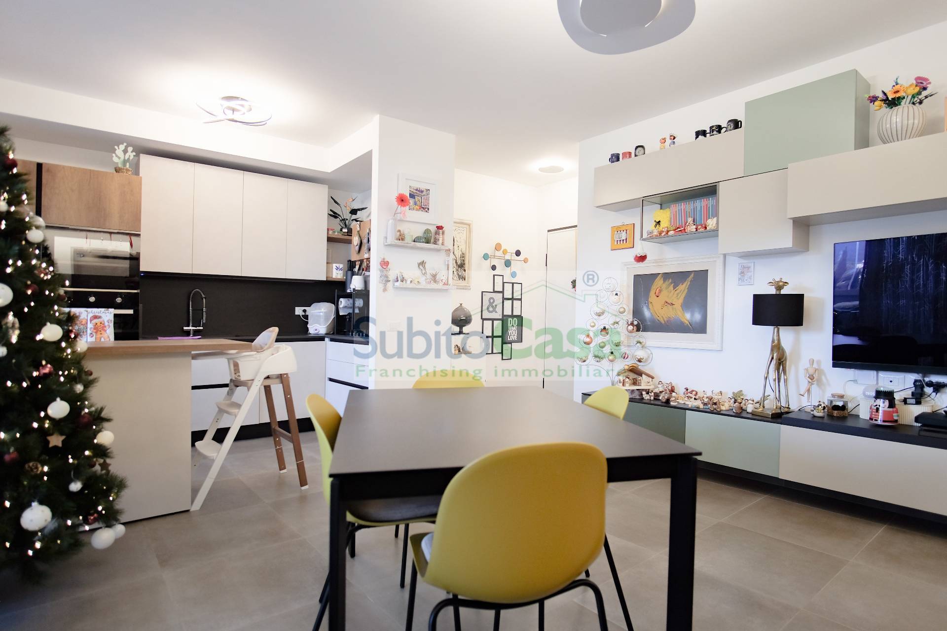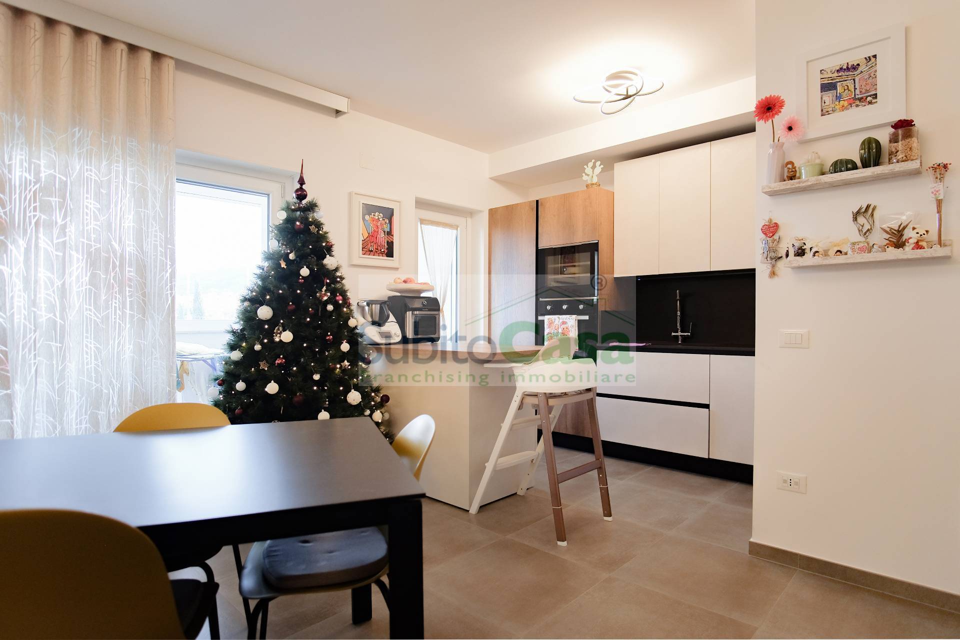 Appartamento in vendita Sambuceto, Via Ciafarda In una delle zone residenziali pi richieste di Sambuceto, immersa nel verde e vicina a tutti i servizi principali, proponiamo in vendita un moderno appartamento inserito in un complesso di nuova costruzione (2020). Situato al 2° piano di un condominio servito da ascensore, limmobile sviluppa una superficie di circa 90 mq cos composta: ingresso su luminoso soggiorno con angolo cottura; ampio terrazzo verandato, ideale come estensione della zona giorno; camera matrimoniale; camera doppia; due bagni spaziosi, entrambi con doccia; balcone aggiuntivo nella zona notte.