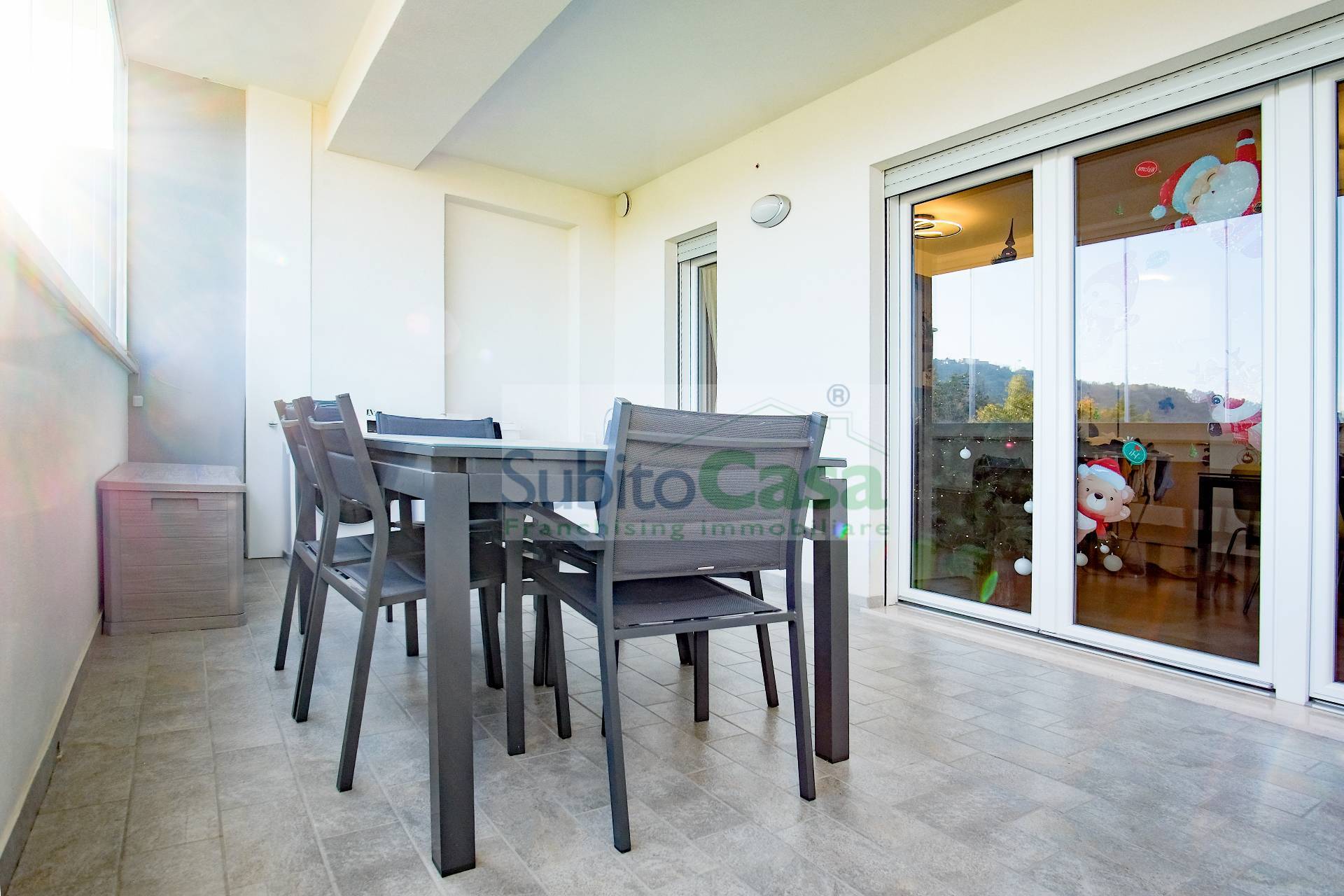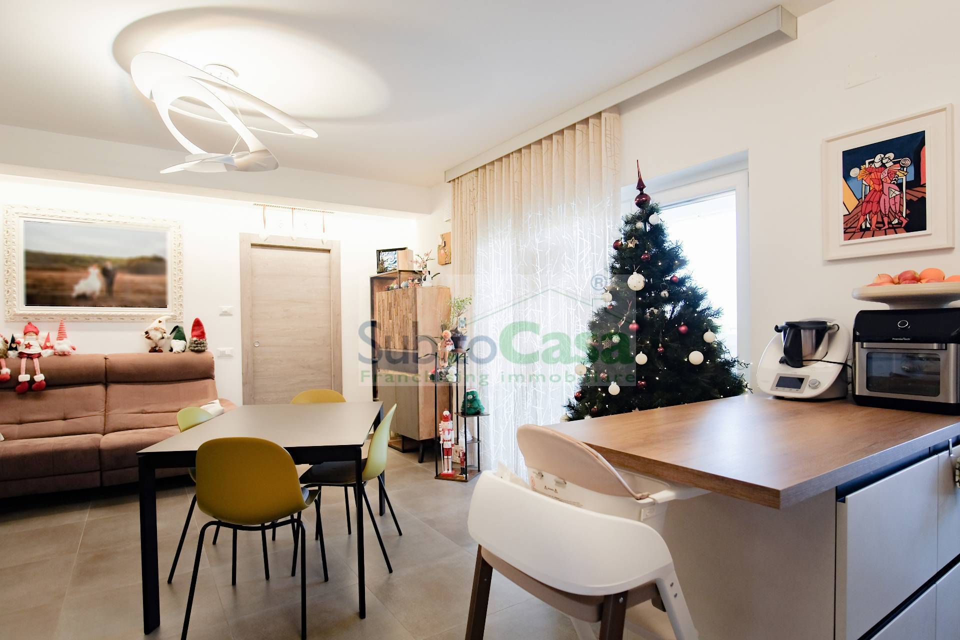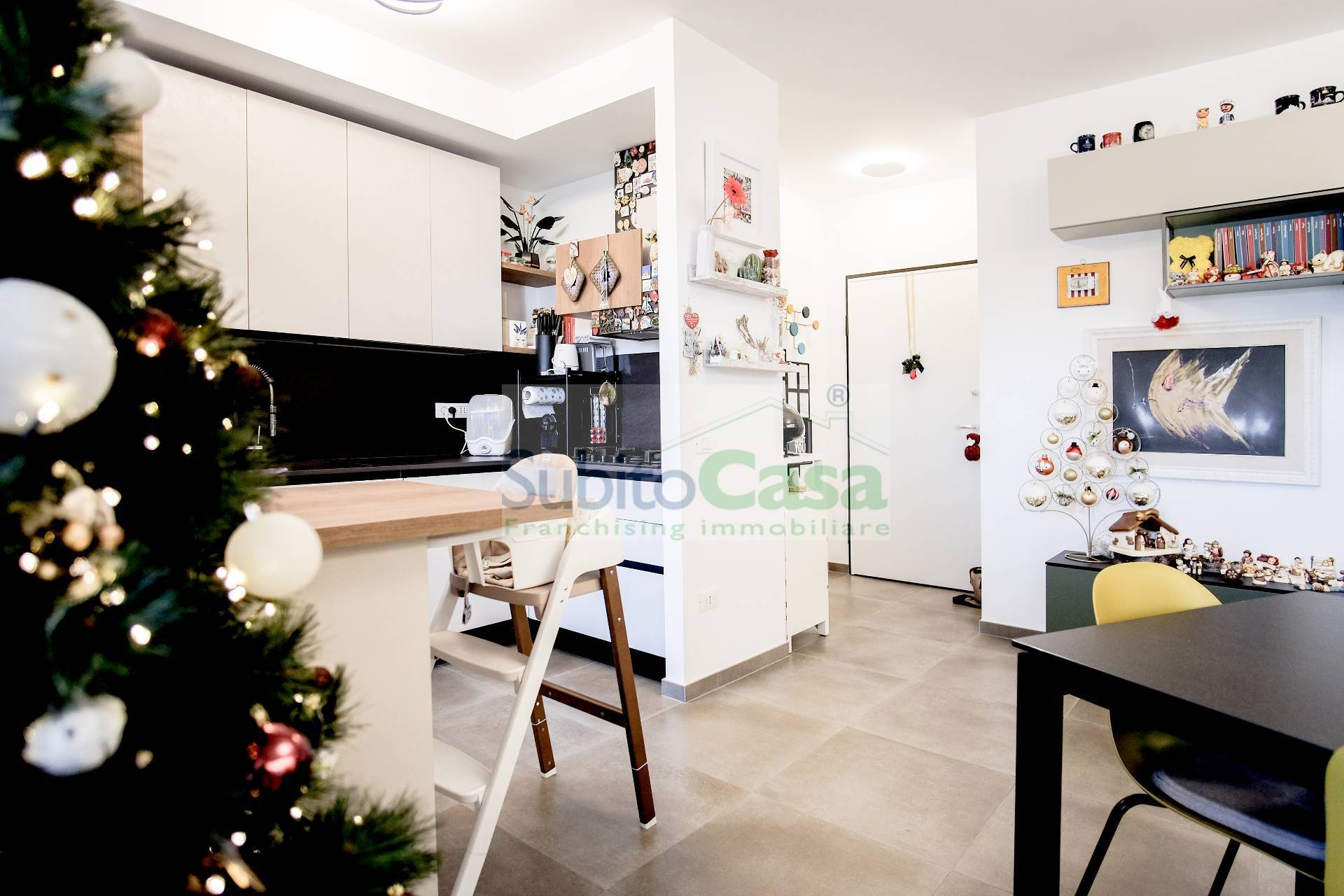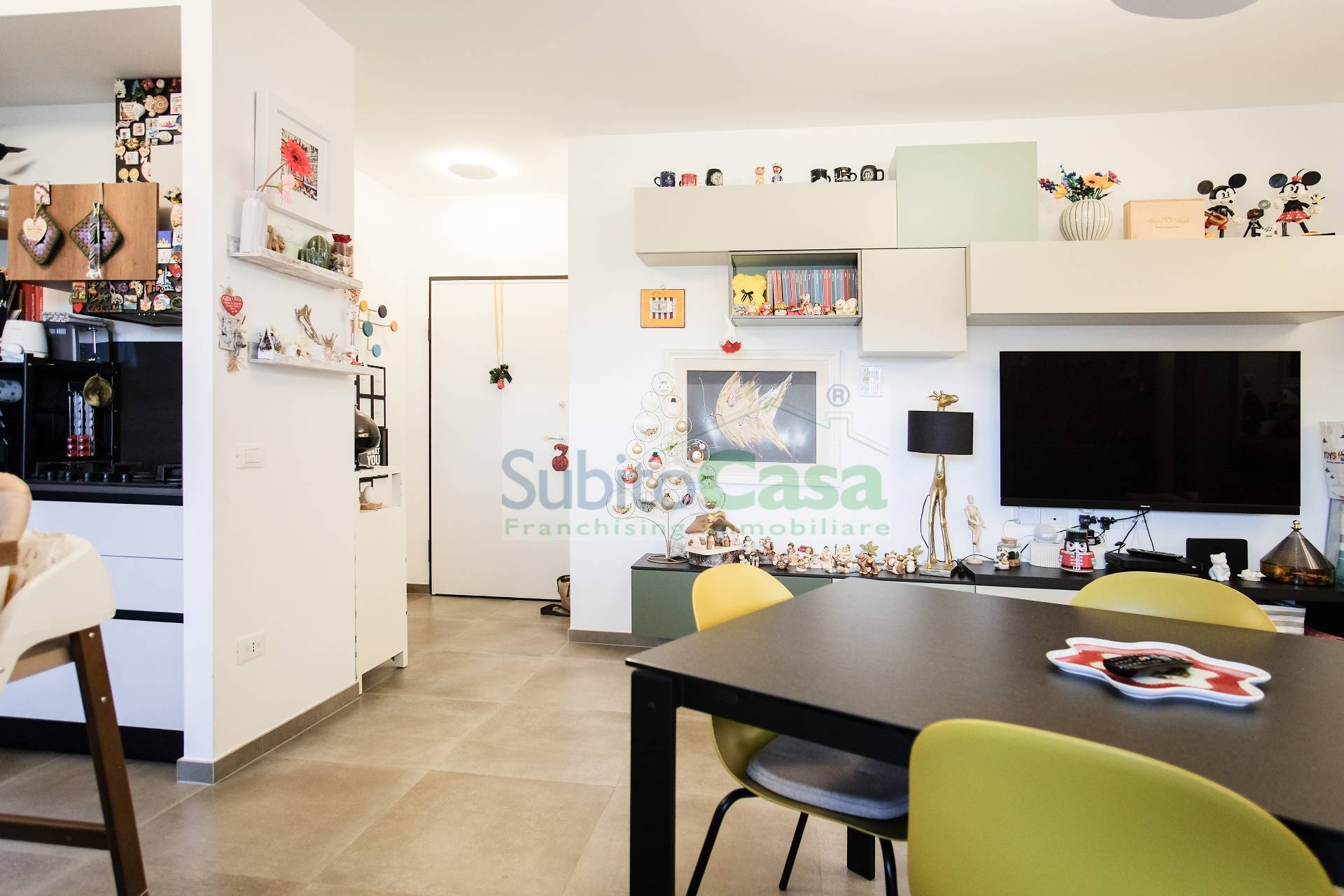 Appartamento in vendita Sambuceto, Via Ciafarda In una delle zone residenziali pi richieste di Sambuceto, immersa nel verde e vicina a tutti i servizi principali, proponiamo in vendita un moderno appartamento inserito in un complesso di nuova costruzione (2020). Situato al 2° piano di un condominio servito da ascensore, limmobile sviluppa una superficie di circa 90 mq cos composta: ingresso su luminoso soggiorno con angolo cottura; ampio terrazzo verandato, ideale come estensione della zona giorno; camera matrimoniale; camera doppia; due bagni spaziosi, entrambi con doccia; balcone aggiuntivo nella zona notte.