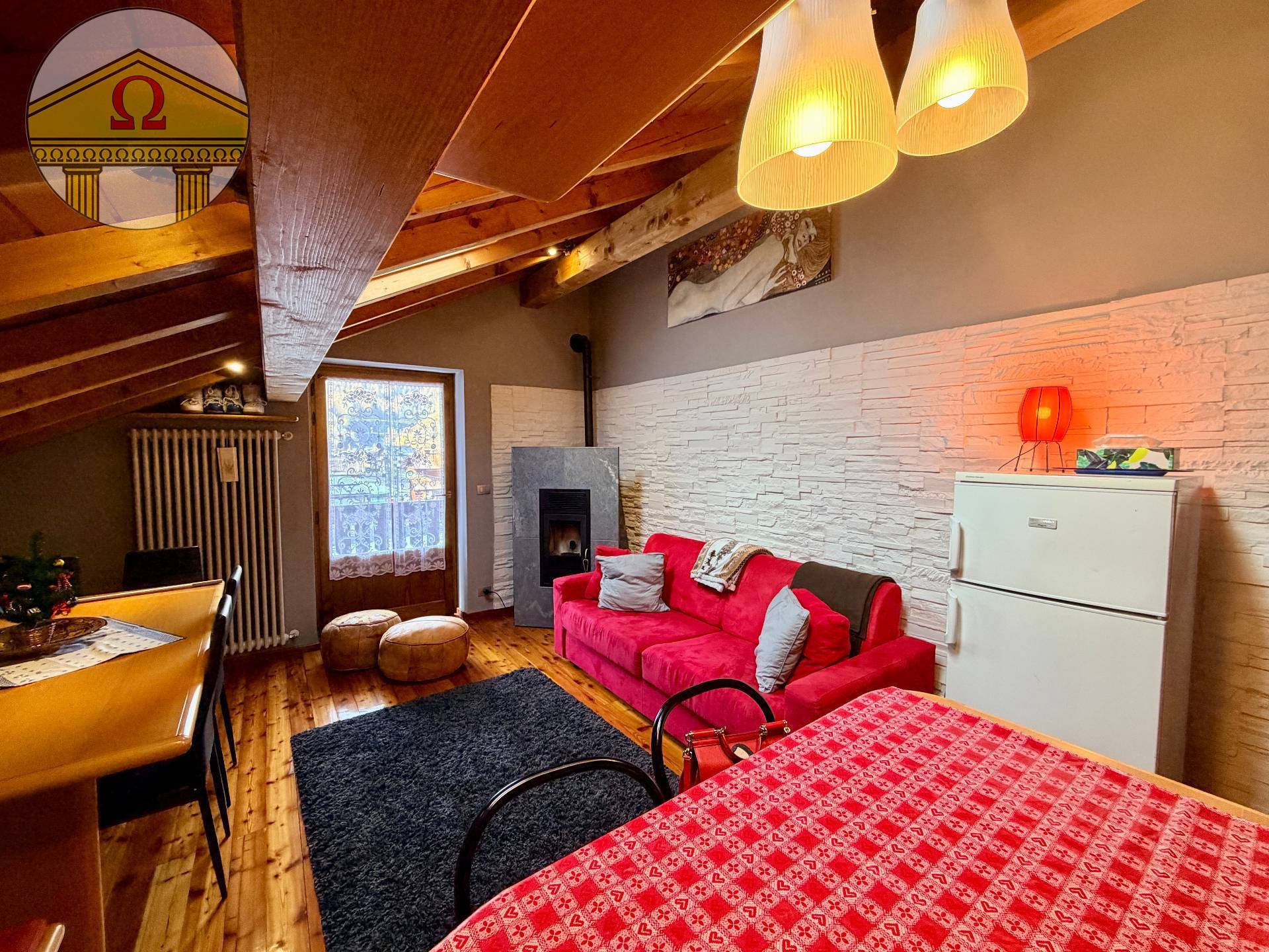 Atmosfera & Calore: Una stufa a pellet che crea il "mood" perfetto dopo una giornata sugli sci. Zero Pensieri: La mansarda viene venduta completamente arredata.