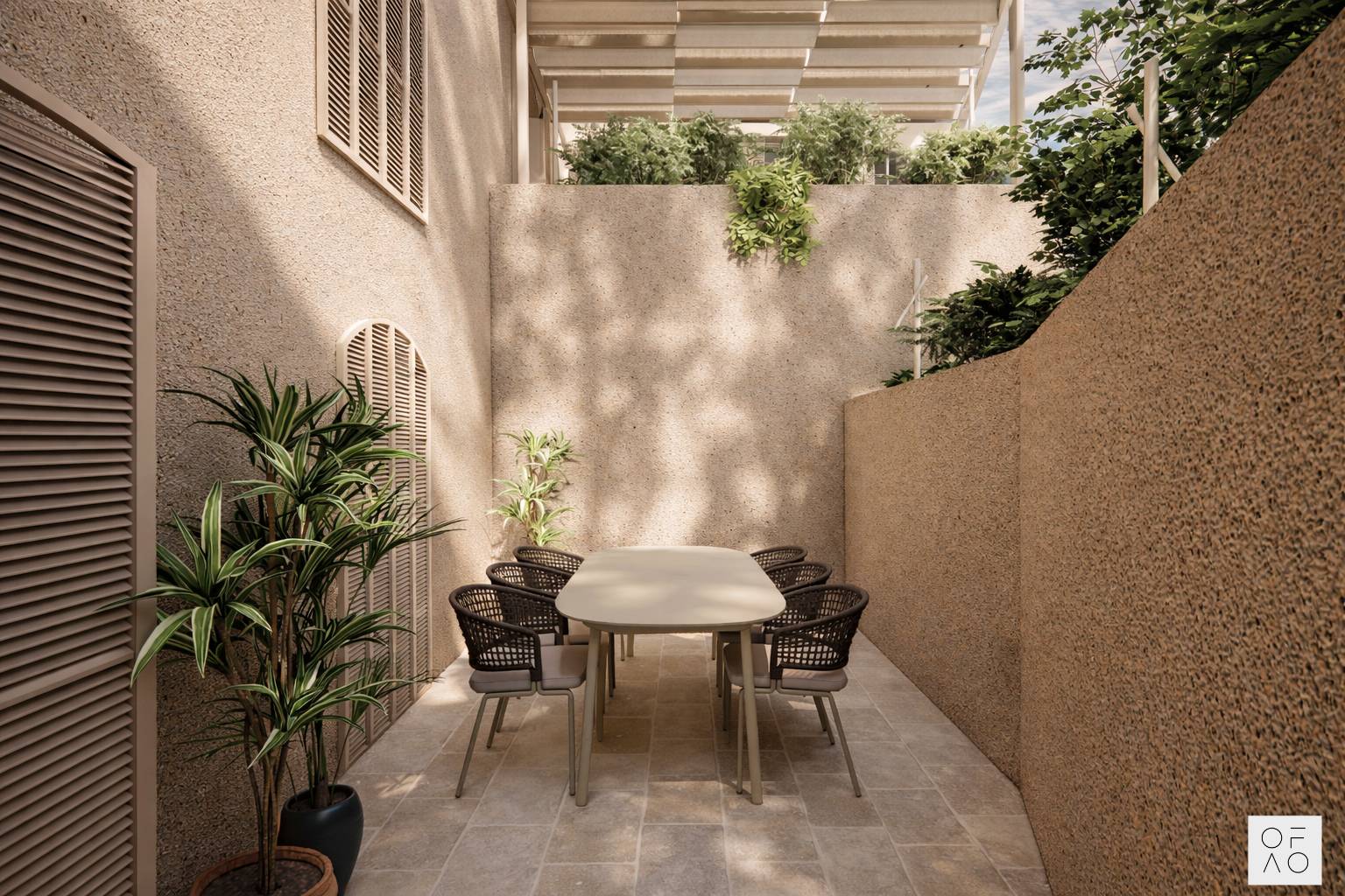 Gli interni saranno progettati con un elegante attenzione al dettaglio, combinando comfort moderni con uno stile contemporaneo ispirato allarchitettura locale.
