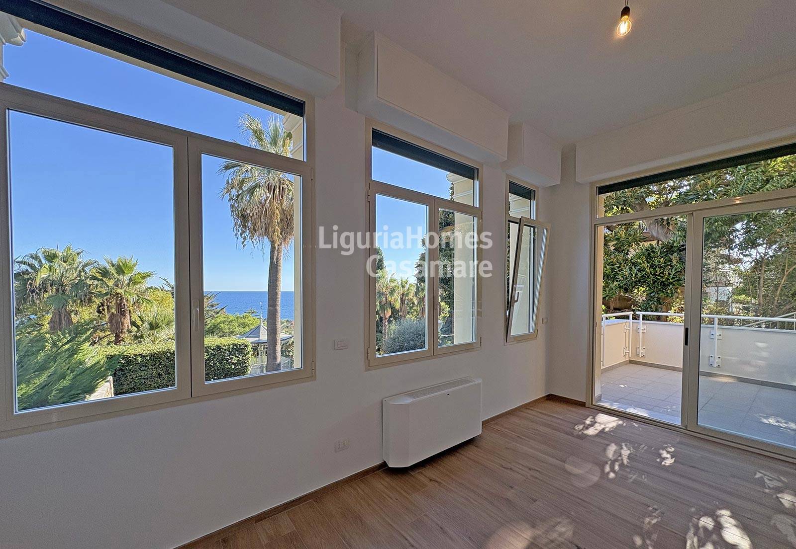 Appartamento quadrilocale ristrutturato con vista mare e giardino privato in vendita a Sanremo.
