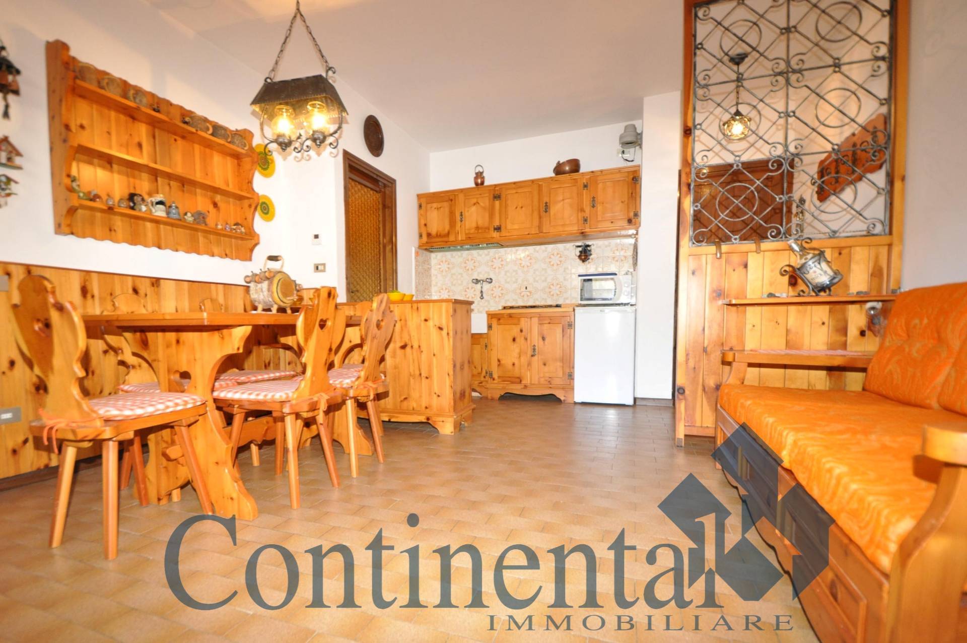 Labitazione offre un luminoso soggiorno con caminetto e angolo cottura, un disimpegno, una camera da letto con balcone ed un bagno.