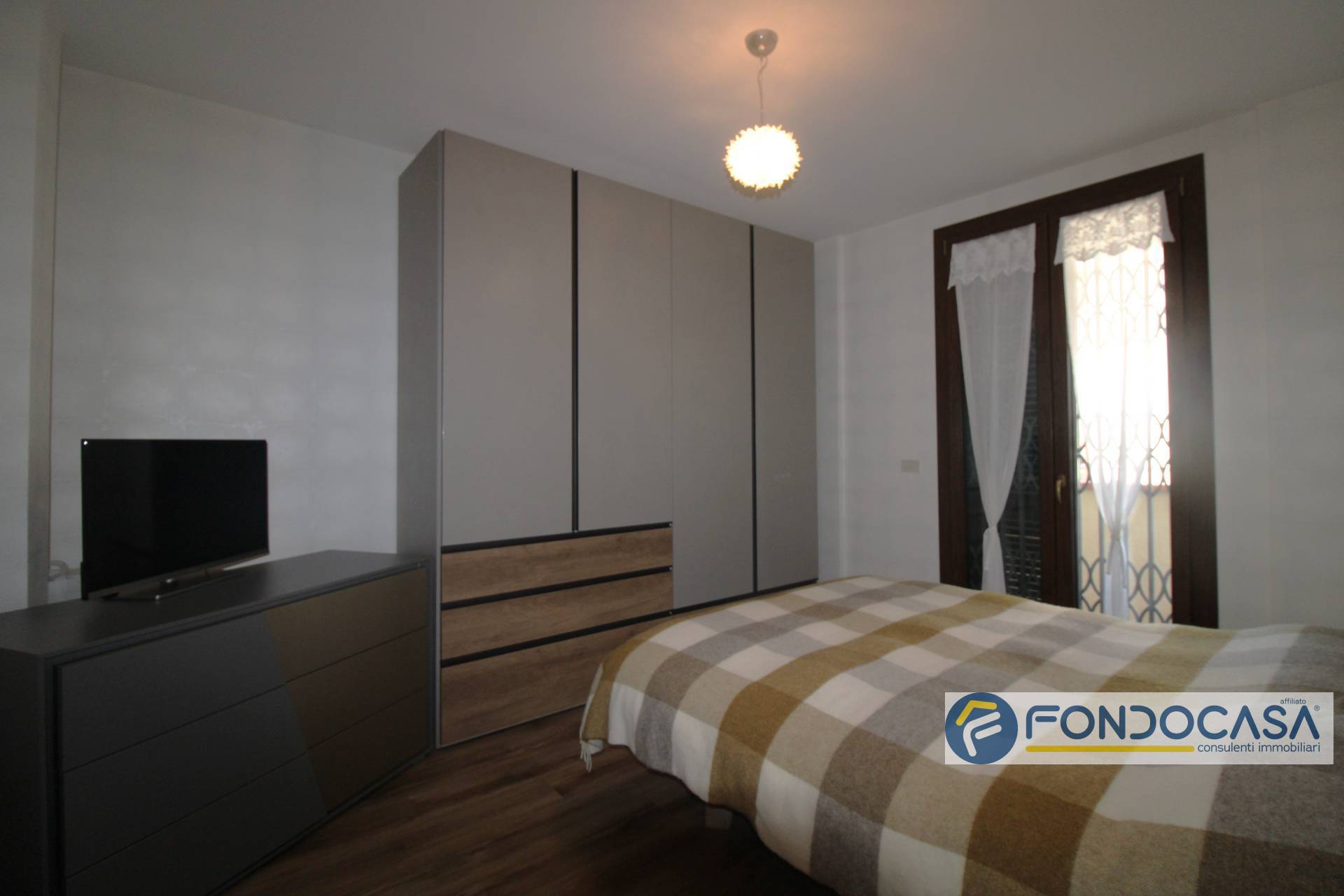 Entrando troviamo la zona giorno con angolo cottura, la camera da letto matrimoniale con balcone, la camera singola e il bagno con finestra e doccia.