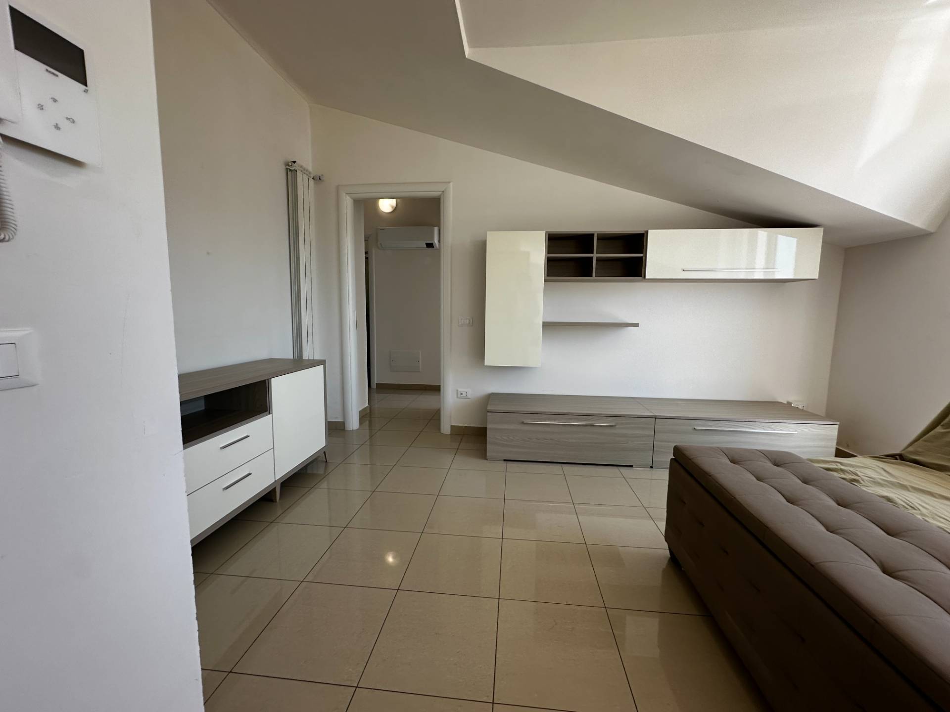 L' appartamento composto da tre locali, di cui due camere da letto, un bagno ed una luminosissima zona living con cucina a vista.