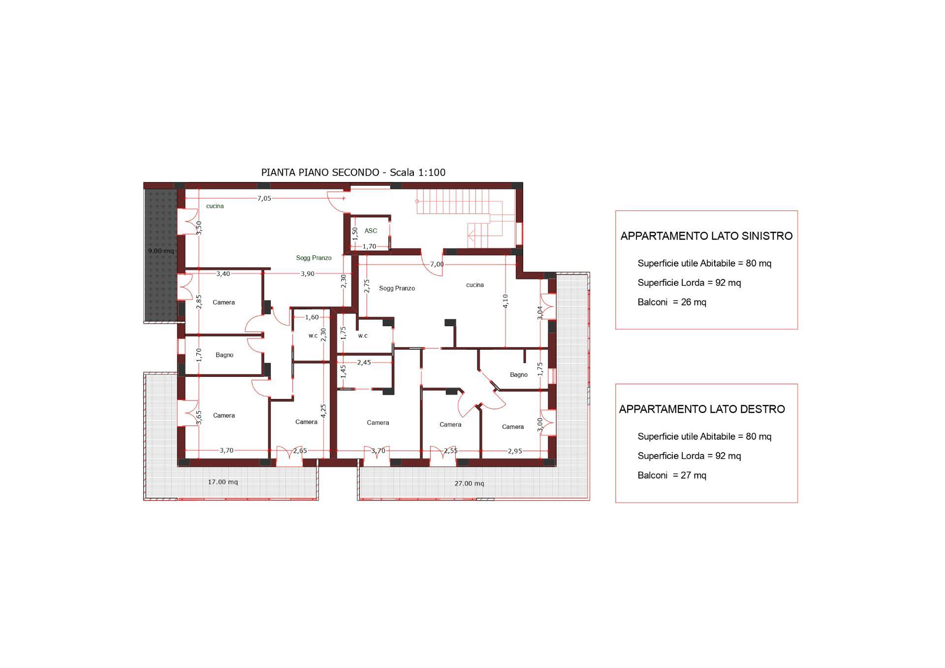 Piano Secondo: -2 Appartamenti con ampi balconi, box auto incluso e la possibilit di acquistare anche la porzione di lastrico solare.