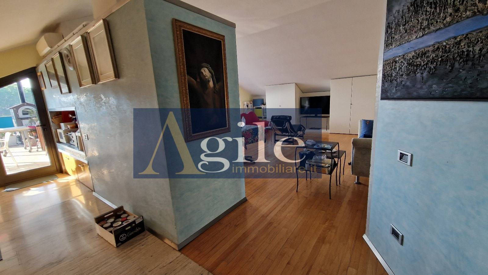 ATTICO con finiture di pregio e ampi terrazzi in vendita a Sant'Egidio alla Vibrata- Rif. 3349 L'agenzia Agile immobiliare propone in vendita ATTICO di circa 120,00 mq posto al piano secondo con esposizione SUD/NORD/EST/OVEST all'interno di una piccola ed elegante palazzina priva di ascensore e cos composta: ingresso su soggiorno, cucina abitabile, camera da letto matrimoniale, sala da pranzo con possibilit di realizzare una seconda camera, bagno principale con box doccia e vasca idromassaggio, terrazzo abitabile di circa 100 mq. Completa la propriet una grande corte pavimentata perfetto per parcheggiare pi macchine, giardino in comune di circa 1000 mq. L'immobile presenta delle ottime finiture quali: portoncino di ingresso blindato, pavimentazione parquet/marmo, infissi in alluminio con vetrocamera corredati di persiane in legno, impianto elettrico completamente a norma con le normative dell'epoca costruttiva, impianto termico con radiatori in alluminio con caldaia tradizionale esterna, impianto fotovoltaico, camino.