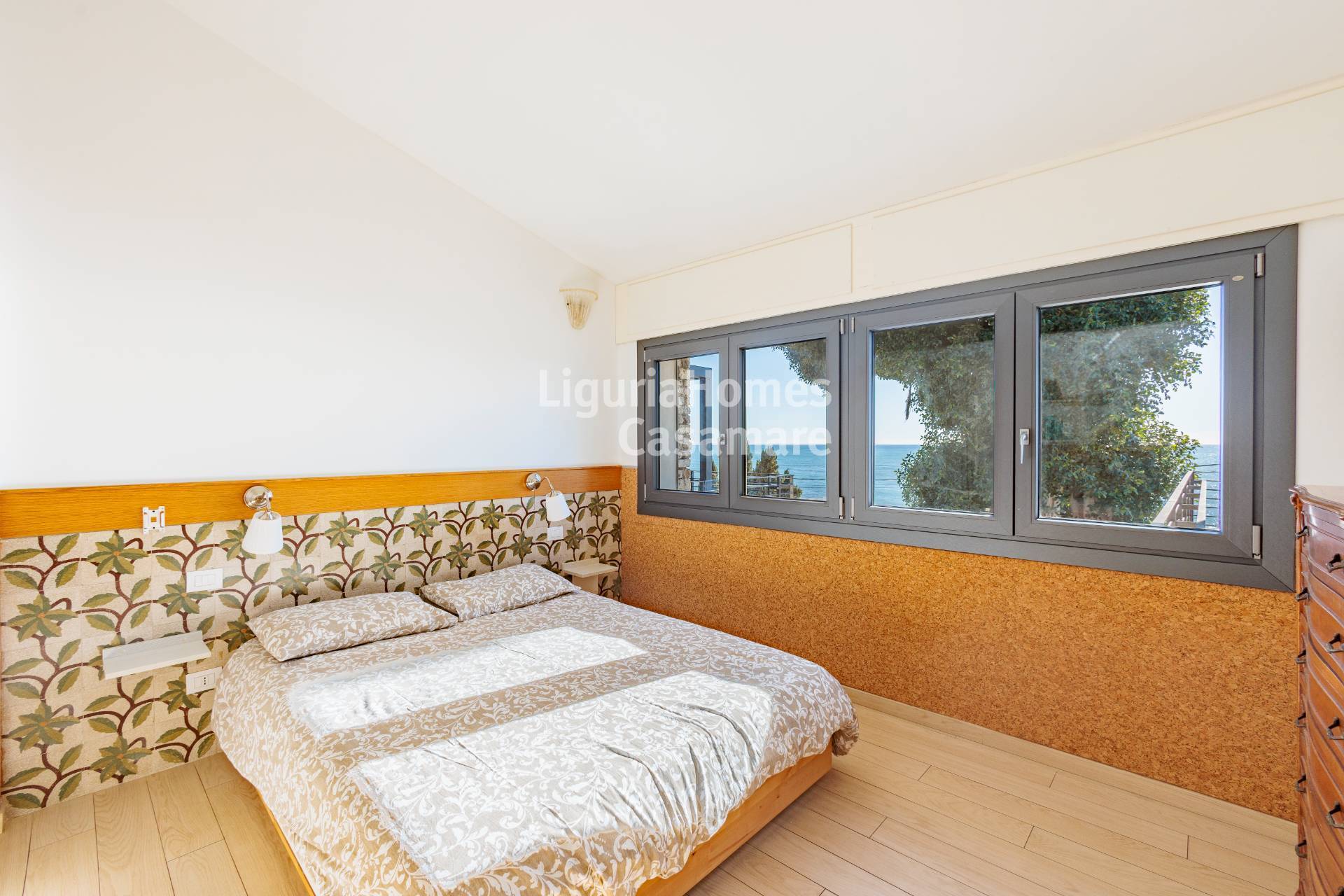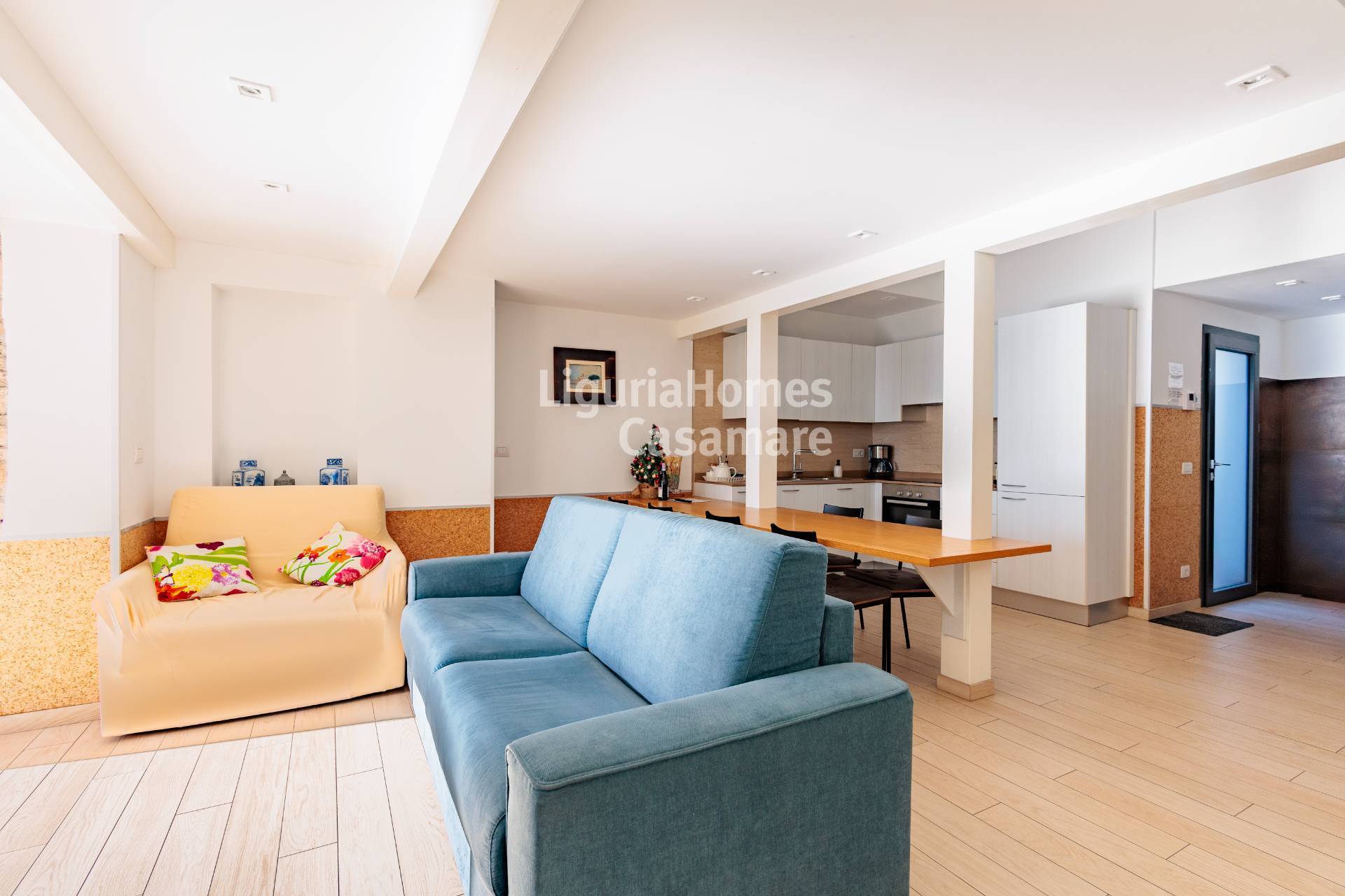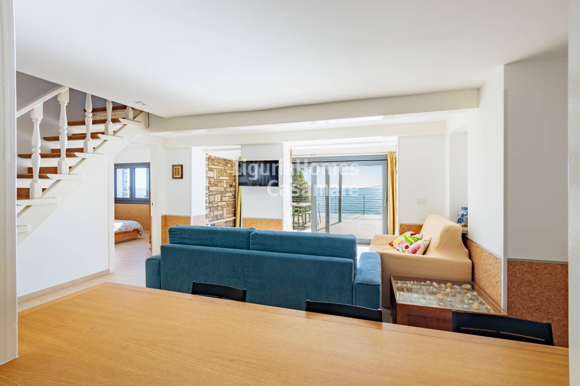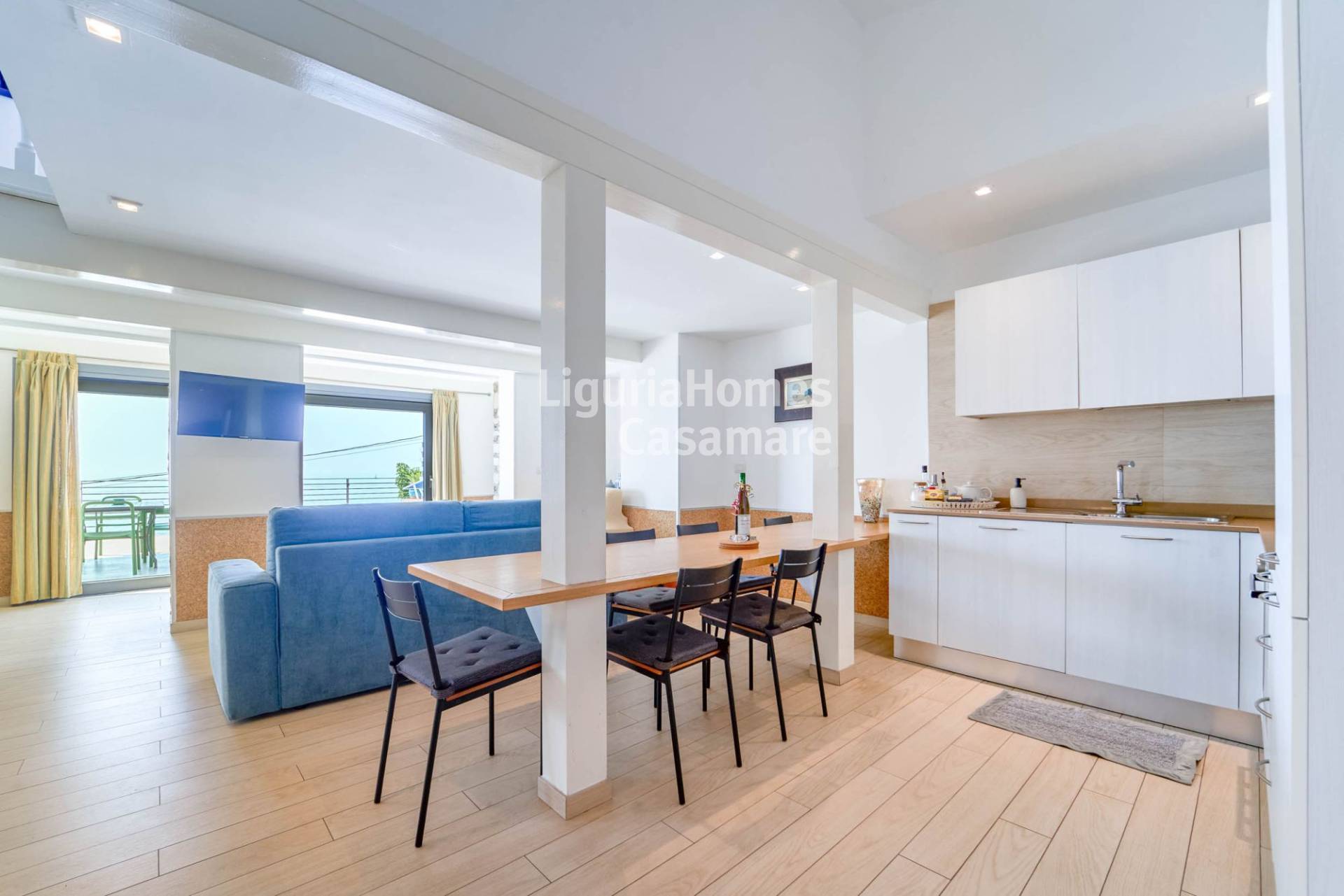 Appartamento con grande terrazza vista mare a Santo Stefano al Mare. A pochi passi dalle spiagge e dal centro di Santo Stefano al Mare, vendita in esclusiva di appartamento dalle ampie dimensioni, con grande terrazza e favolosa vista mare situato all'interno di un piccolo ed elegante complesso residenziale composto da due ville completamente ristrutturate.