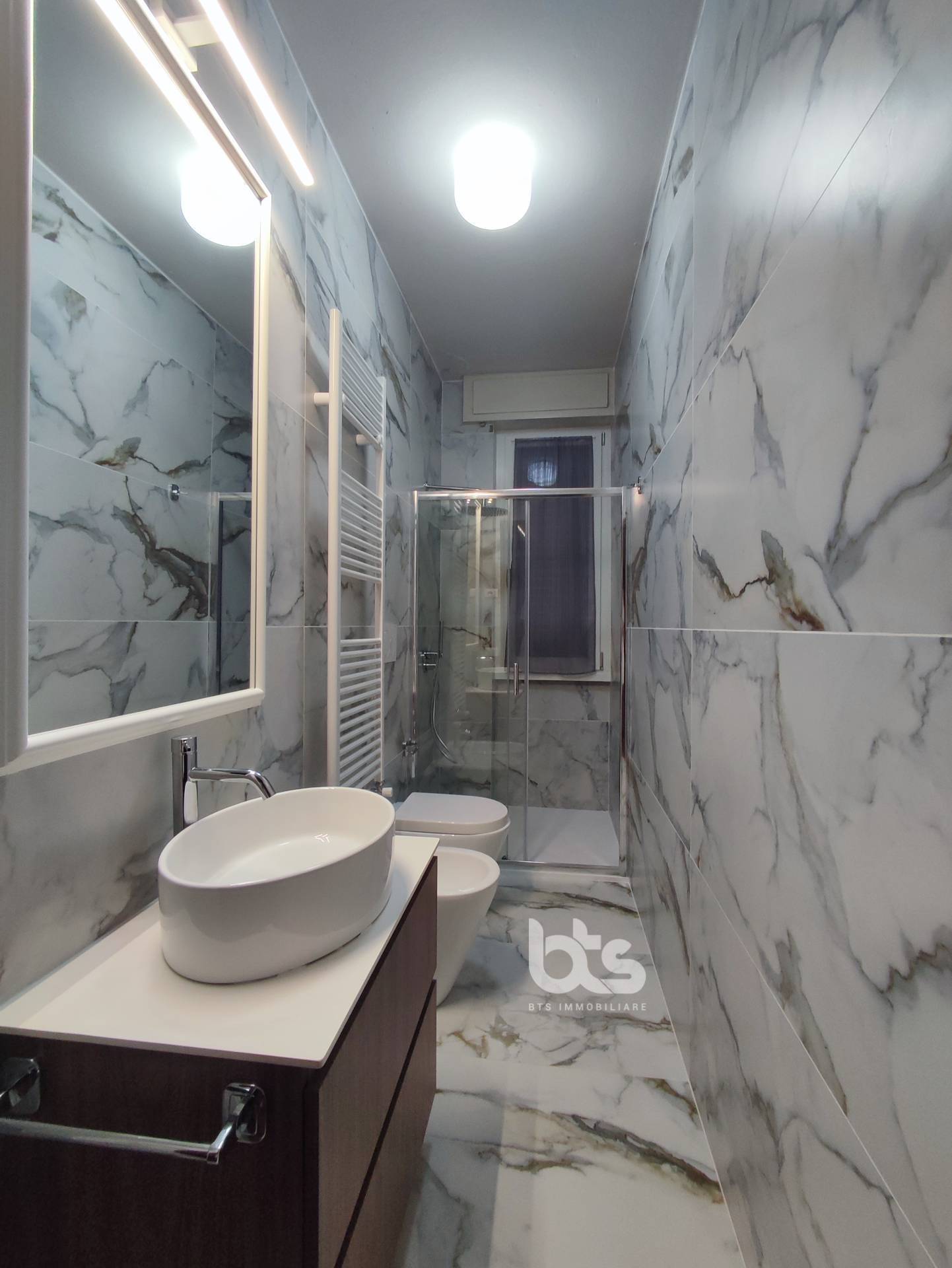 Un ampia zona living con cucina completamente attrezzata in ambiente dedicato risulta ben illuminata grazie a porte finestre che consentono lo sfogo su un balcone ben orientato al sole. Un disbrigo accompagna al bagno con doccia interamente rivisitato a nuovo e alla camera matrimoniale con balcone pertinenziale.