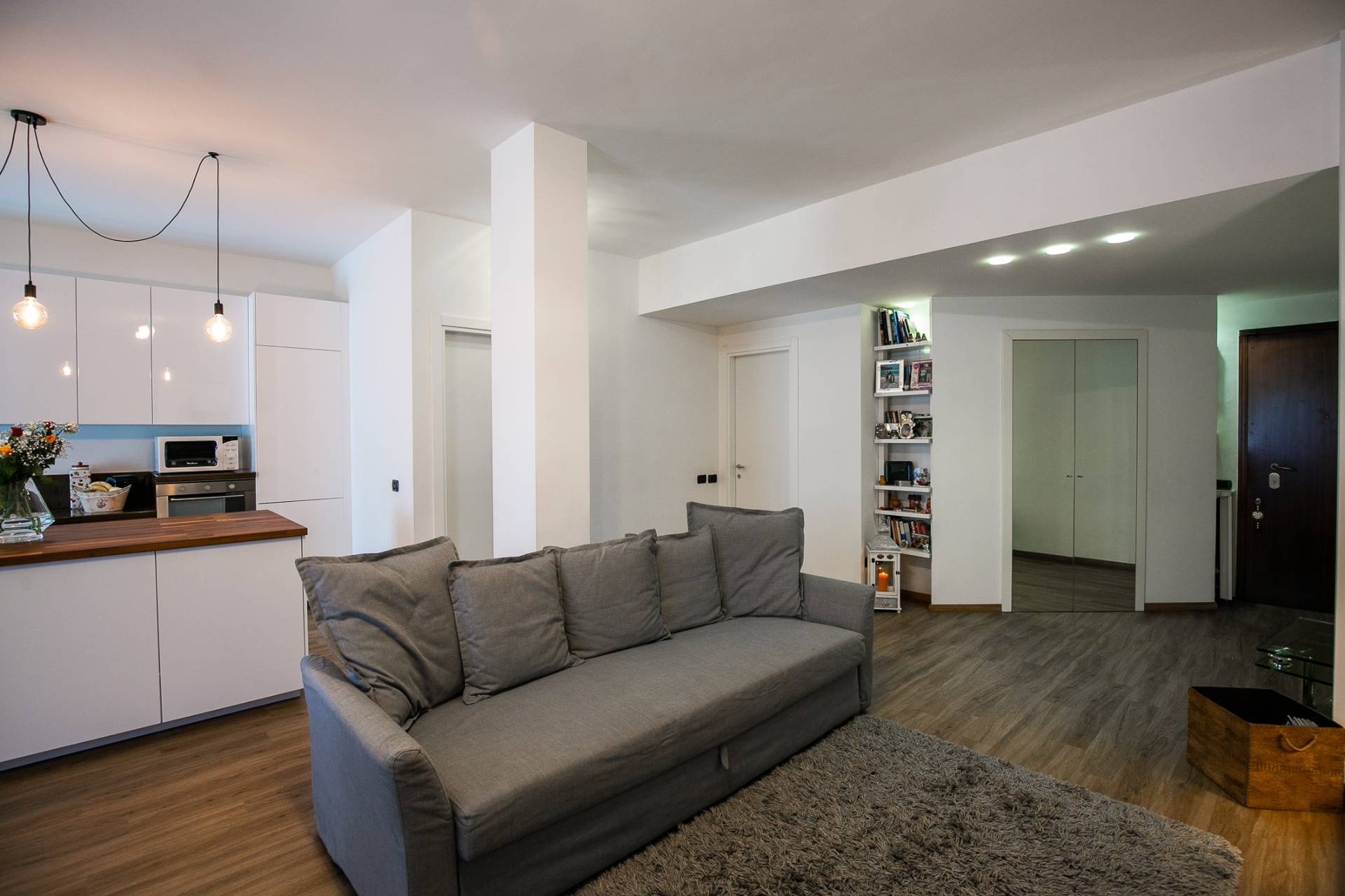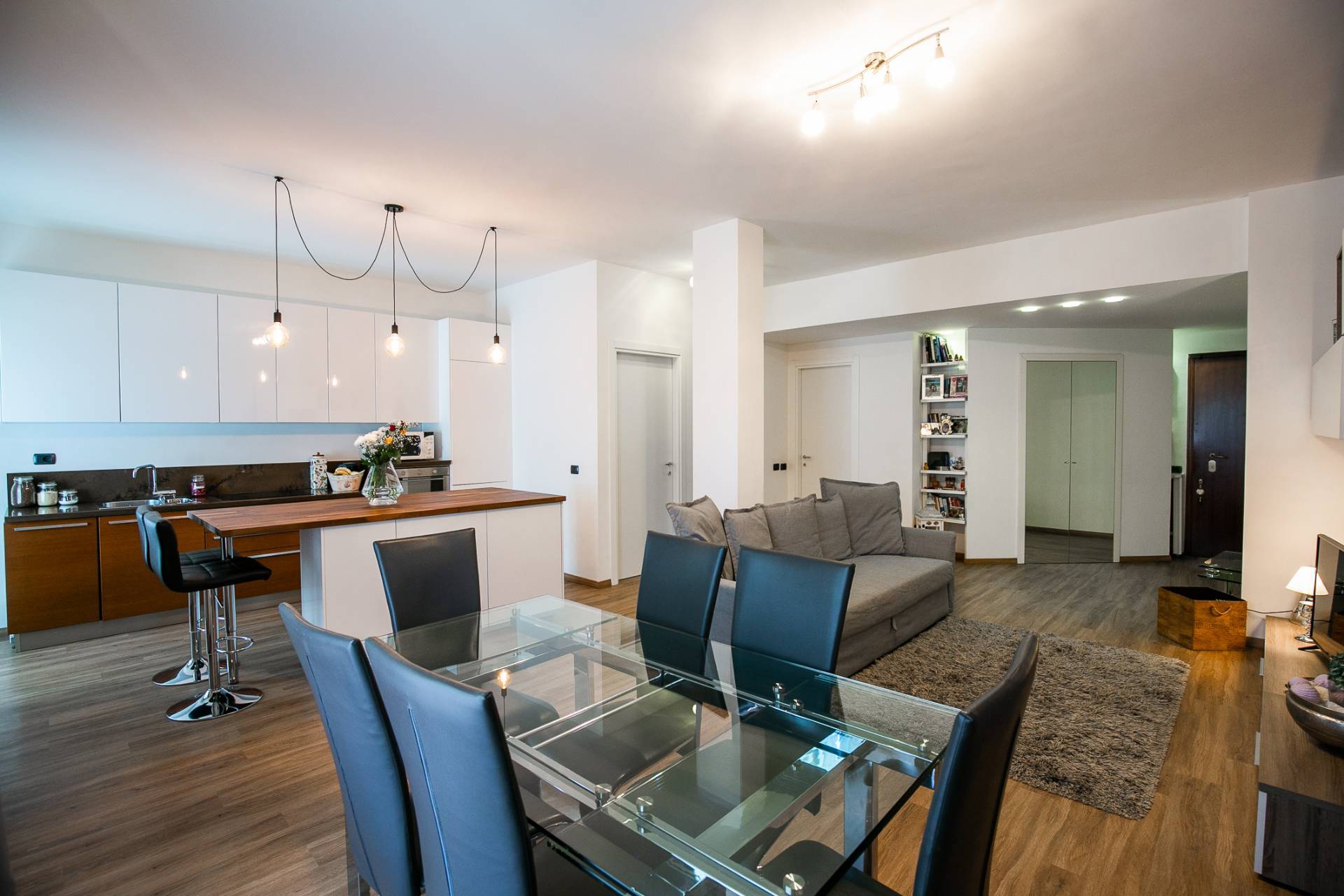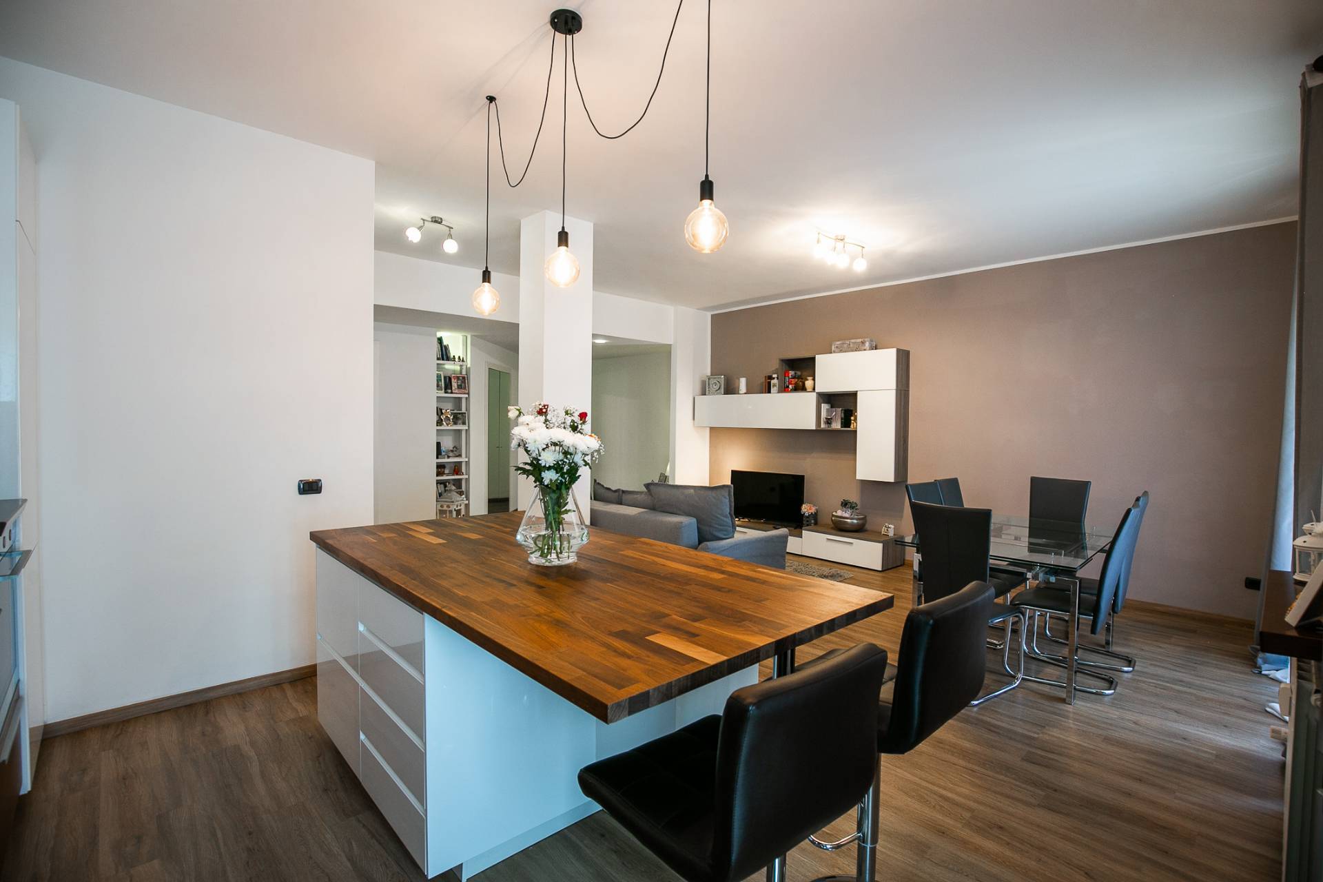 SARONNO : In zona residenziale, Sezionecasa propone in signorile contesto, posto a piano primo e servito di ascensore, splendido quadrilocale con doppi servizi, completamente ristrutturato e cos meglio disposto: ingresso su luminosa zona living, curata nel dettaglio, con abbassamenti e faretti, soggiorno / cucina open-space con accesso a un ampio balcone sfruttabile che affaccia sul giardino ben tenuto e piantumato della palazzina, proseguendo, troviamo un primo bagno di servizio con doccia e nella zona notte, possiamo accedere a due ampie camere matrimoniali, alla cameretta con balcone e al bagno padronale, completano box, cantina.