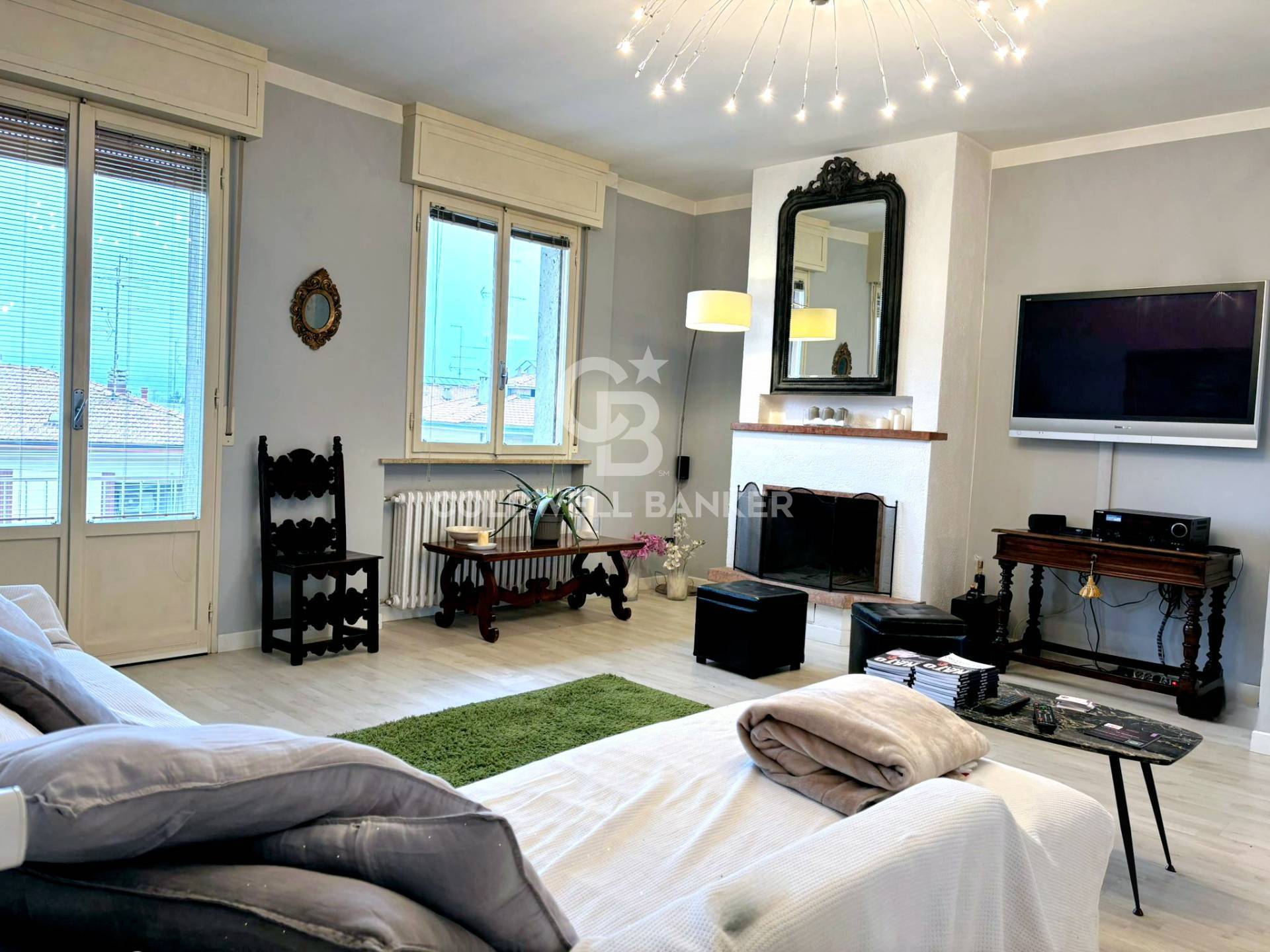 Sassuolo - Rometta In bel palazzo con ascensore, presentiamo in vendita un appartamento al quarto ed ultimo piano, di mq. 145, in ottime condizioni di manutenzione e molto luminoso, con vista aperta, composto da: ingresso in ampio soggiorno con camino e balcone, sala da pranzo anch'essa con balcone, cucina abitabile, disimpegno notte, due camere da letto matrimoniali, due bagni con lavanderia finestrati, scala a giorno di collegamento con sottotetto ad uso ufficio.