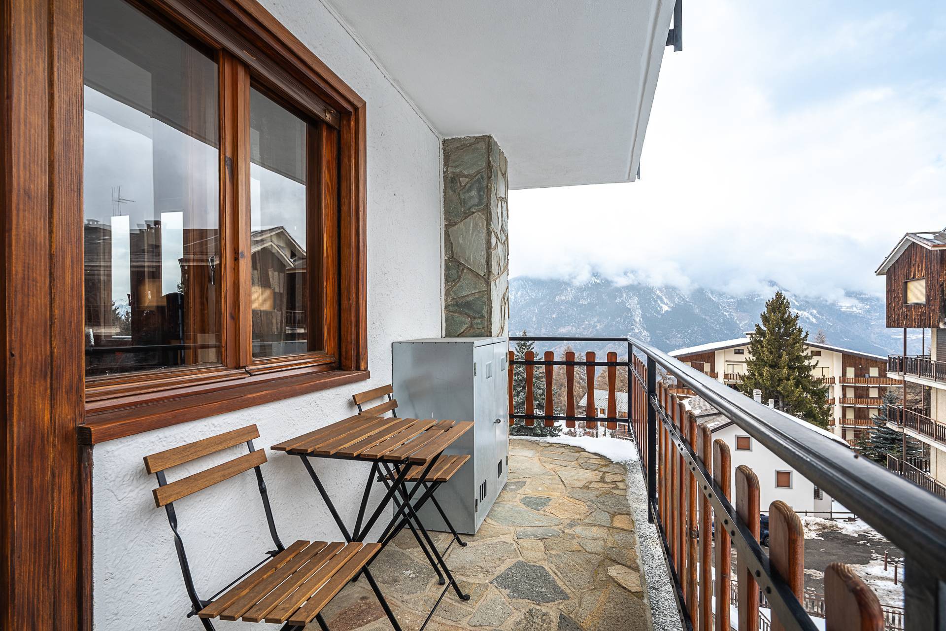 Tutti gli ambienti affacciano sull'ampio balcone con vista sulla montagna, la luminosit unica.