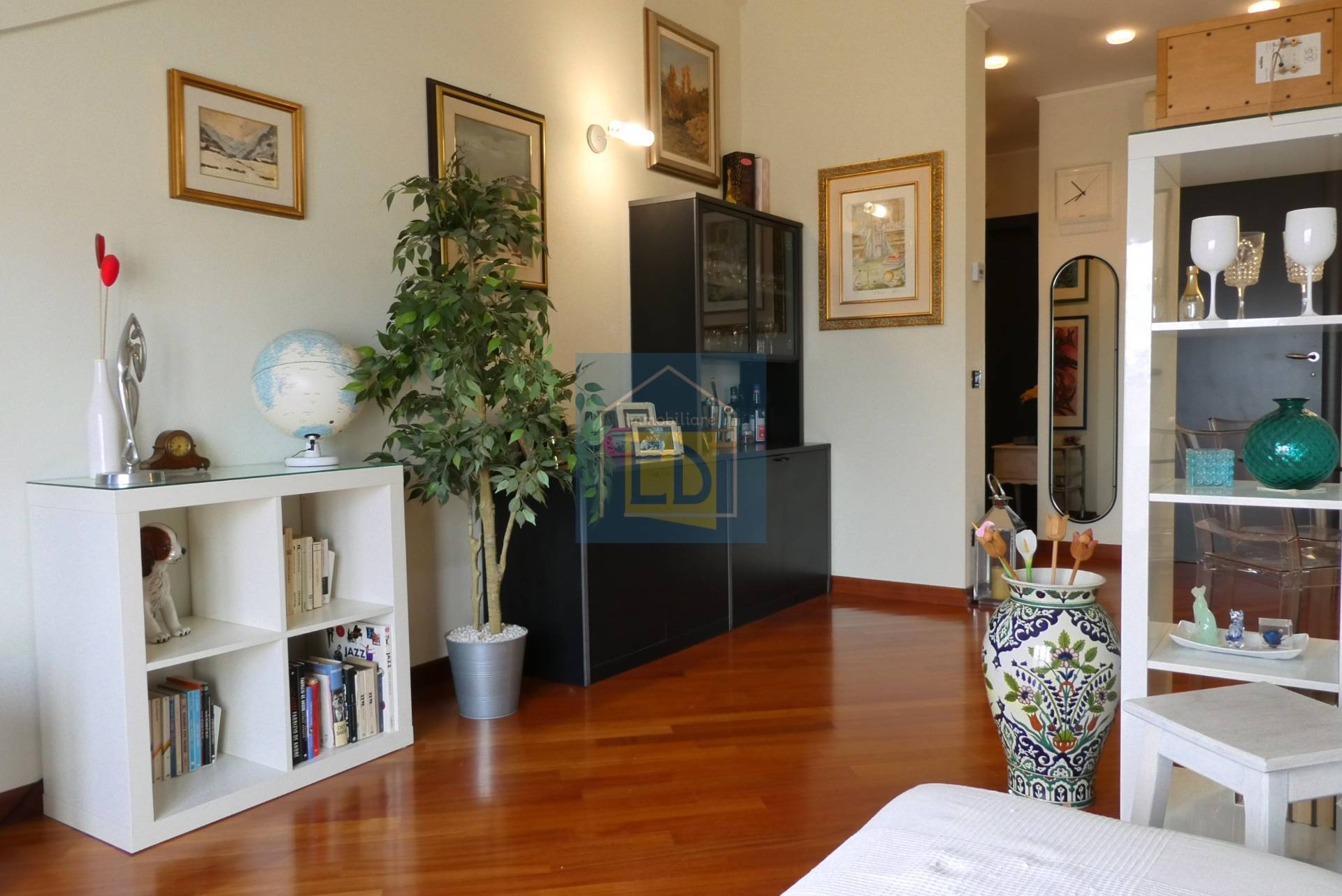 L'appartamento, parzialmente mansardato, presenta pavimentazione in parquet in legno e ceramiche in zona cucina e bagno.