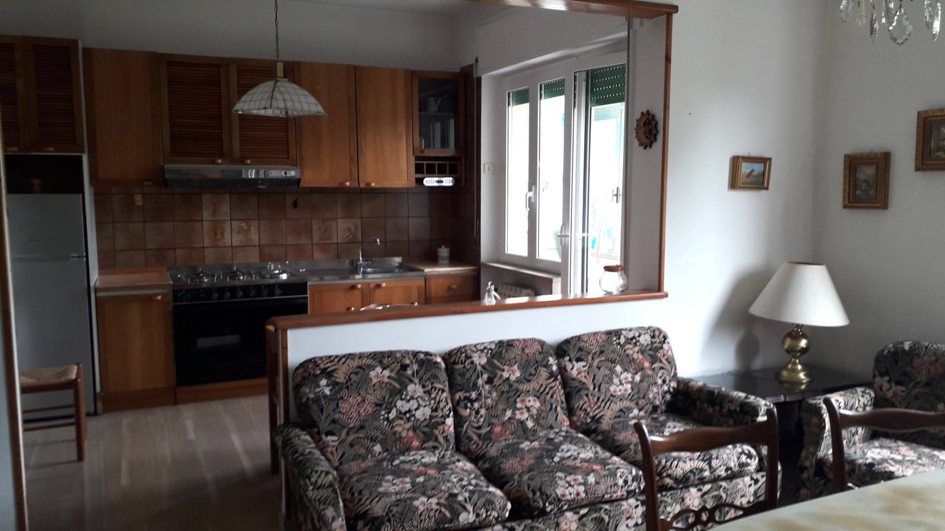 Nel centro di Scafa, appartamento al piano rialzato composto da: ingresso, soggiorno con camino, cucina, 2 camere da letto, bagno, ripostiglio e veranda.
