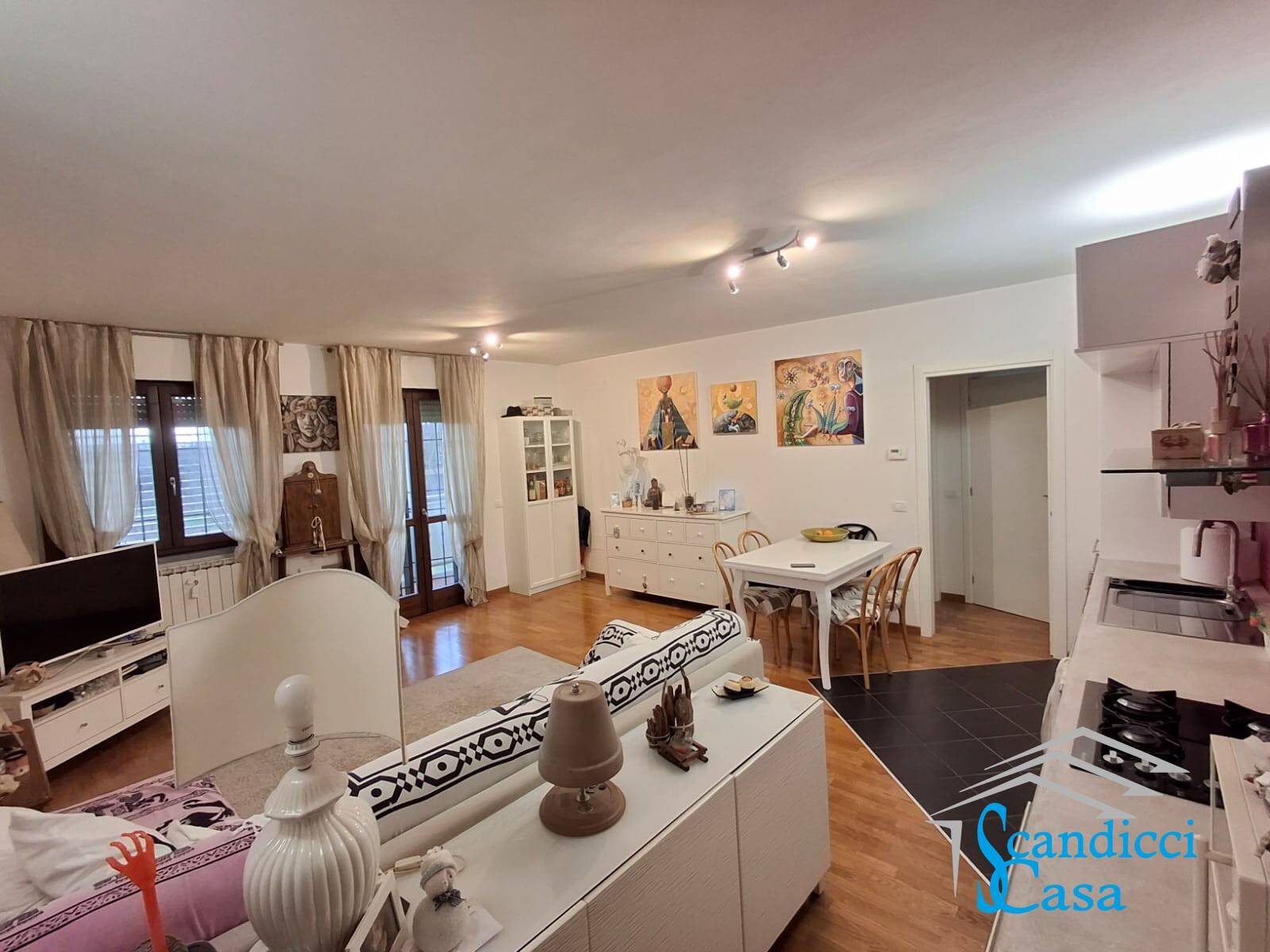 SCANDICCI - BADIA A SETTIMO - NOSTRA ESCLUSIVA Appartamento posto al primo piano con ascensore e senza barriere in palazzina del 2010. L'immobile si compone di un'ampia zona giorno suddivisa tra cucina e living con affaccio su un bellissimo terrazzo angolare a Loggia nel verde, camera da letto matrimoniale, servizio finestrato e zona lavanderia sul terrazzo.