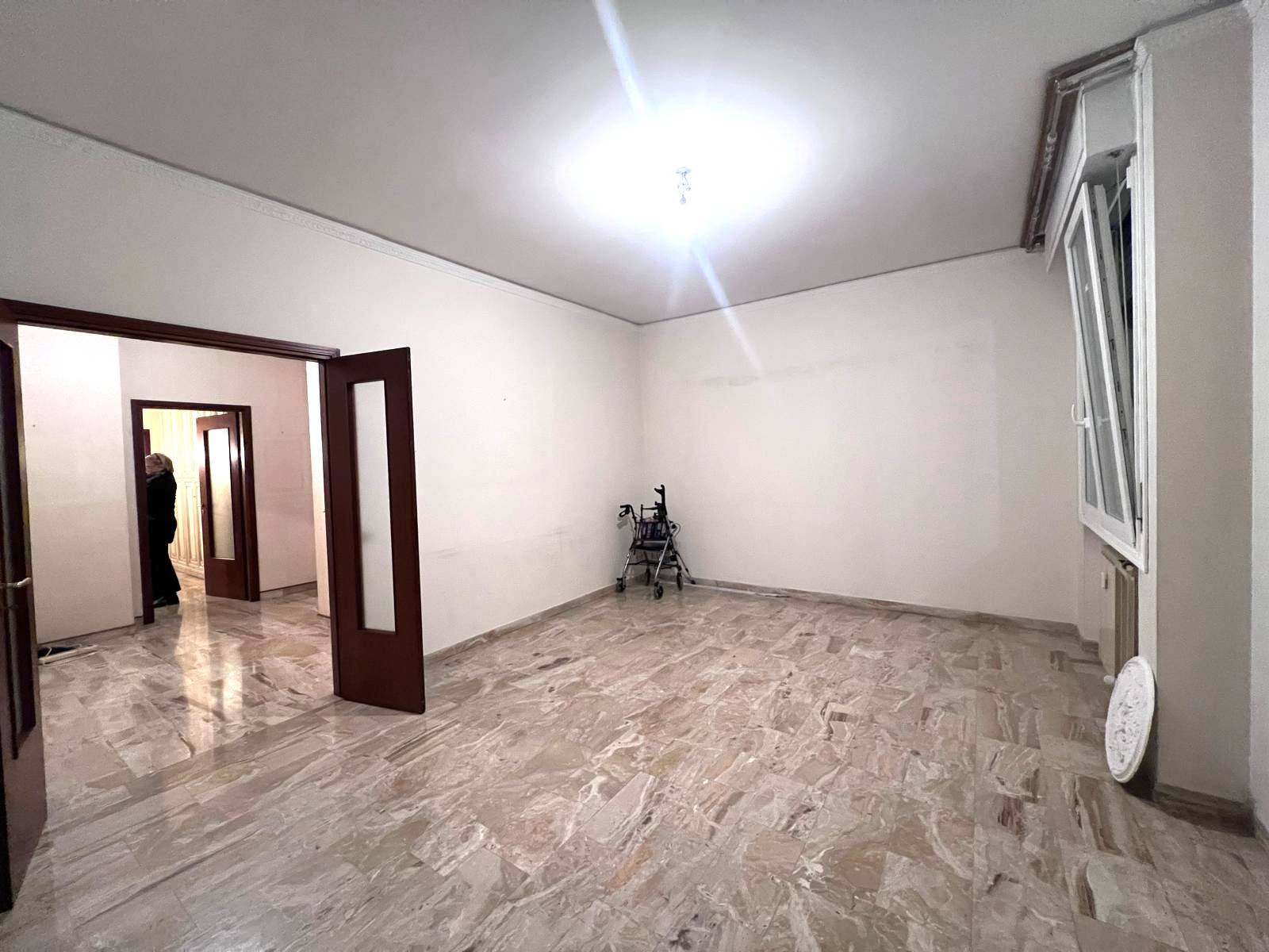 Ingresso ampio, cucina abitabile suddivisa in zona cottura con finestra e zona pranzo dalla quale si accede al balcone, grande sala con possibilit di creare open space, disimpegno notte dal quale si accede a una camera da letto matrimoniale, una camera doppia, servizio con accesso al secondo balcone.