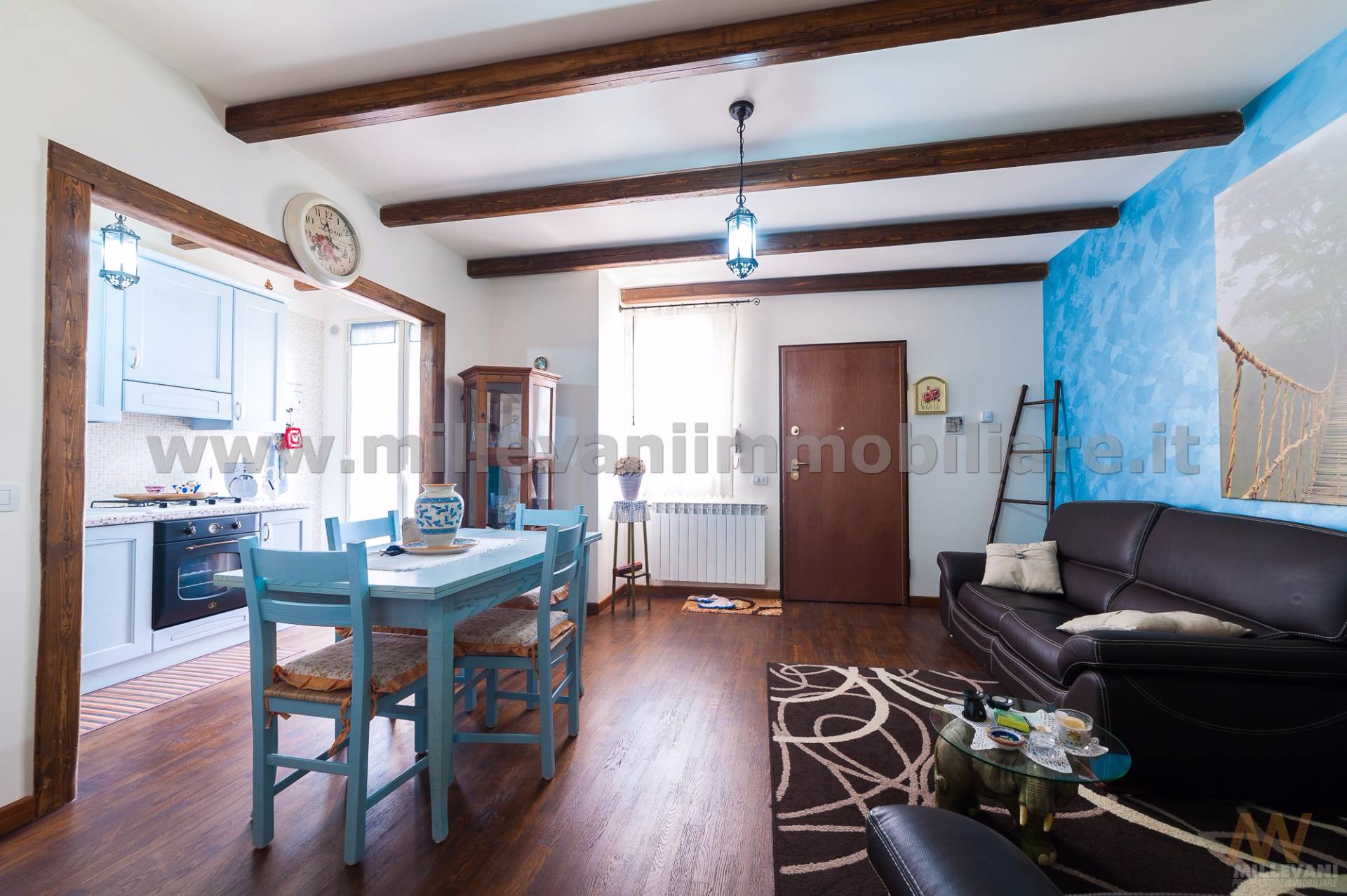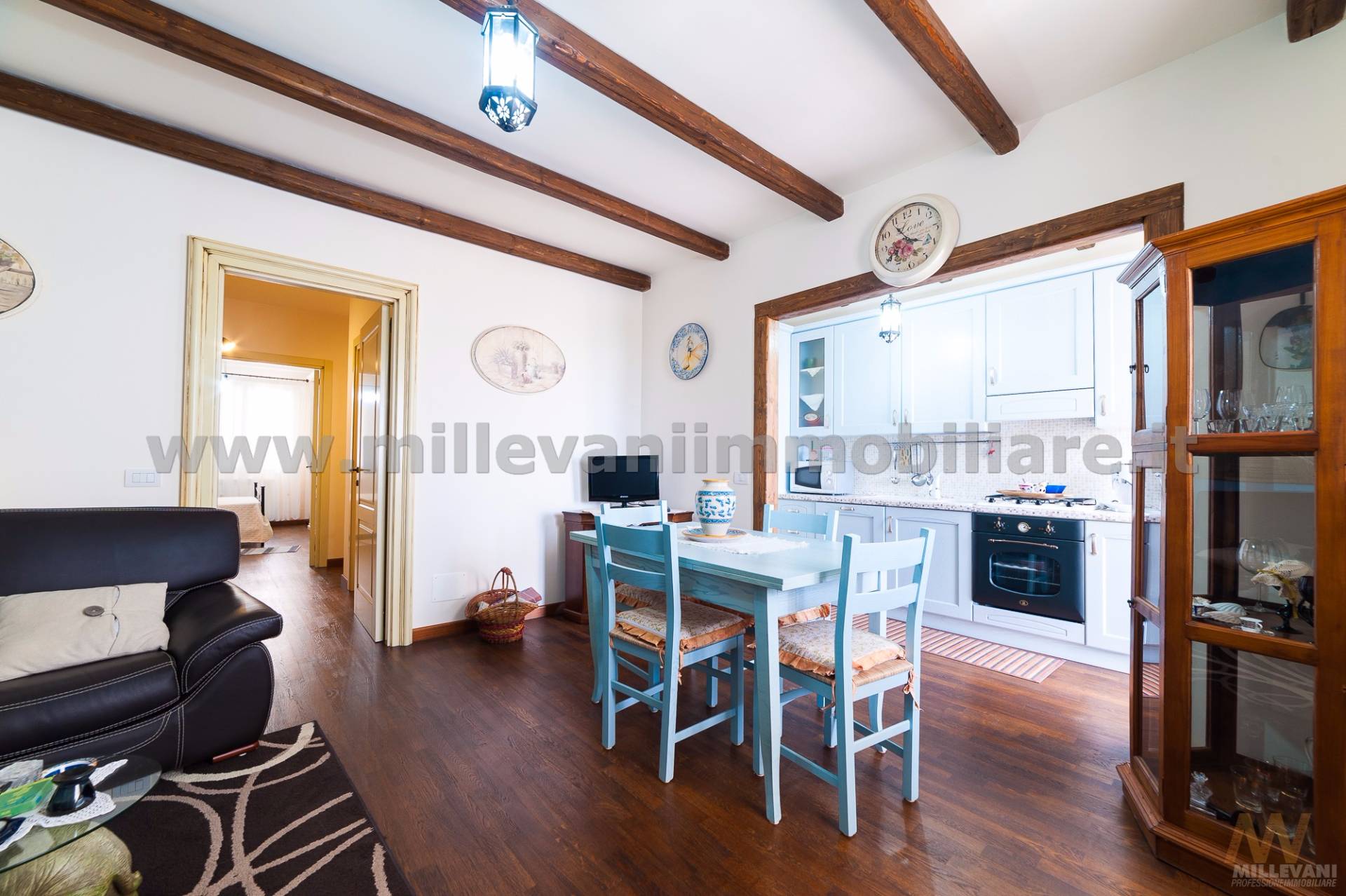 Tramite una scala esterna si accede all'appartamento composto da un ampio ingresso soggiorno-pranzo comunicante con la cucina; di fronte vi la zona notte con camera da letto matrimoniale, una cameretta, il bagno principale,la lavanderia e un cavedio calpestabile.