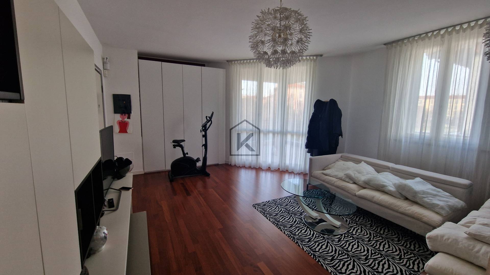 L'appartamento gode di una tripla esposizione EST/SUD/NORD; il QUADRILOCALE si sviluppa su due piani abitativi collegati da comoda scala interna in metallo con pedate in legno: PIANO PRIMO - ingresso su ampio e luminoso soggiorno con balcone di generosa metratura, cucina abitabile con balcone, bagno padronale finestrato completo con doccia PIANO MANSARDATO - disimpegno notte con camera matrimoniale, camera 2, camera 3, bagno finestrato completo con vasca, TERRAZZO di 20 MQ di superficie pavimentato; portoncino blindato, pavimentazione in parquet (in ceramica nei soli servizi), riscaldamento centralizzato a pavimento, serramenti in legno doppi vetri, con anta a ribalta nei bagni e cucina, a certificata tenuta termoacustica per un ottimale isolamento termico ad elevato risparmio energetico, impianto di allarme; l'appartamento si distingue per la pianta regolare, la distribuzione razionale degli spazi, gli ambienti ben proporzionati con un perfetto equilibrio tra zona giorno e zona notte, ogni metro ottimizzato senza sprechi di spazio o angoli inutilizzati, splendida esposizione esterna con ampi balconi e terrazzo, uno sfogo esterno quest'ultimo da personalizzare, spazioso e riservato, un vero valore aggiunto per momenti di relax o semplicemente per godersi aria e luce in ogni stagione.