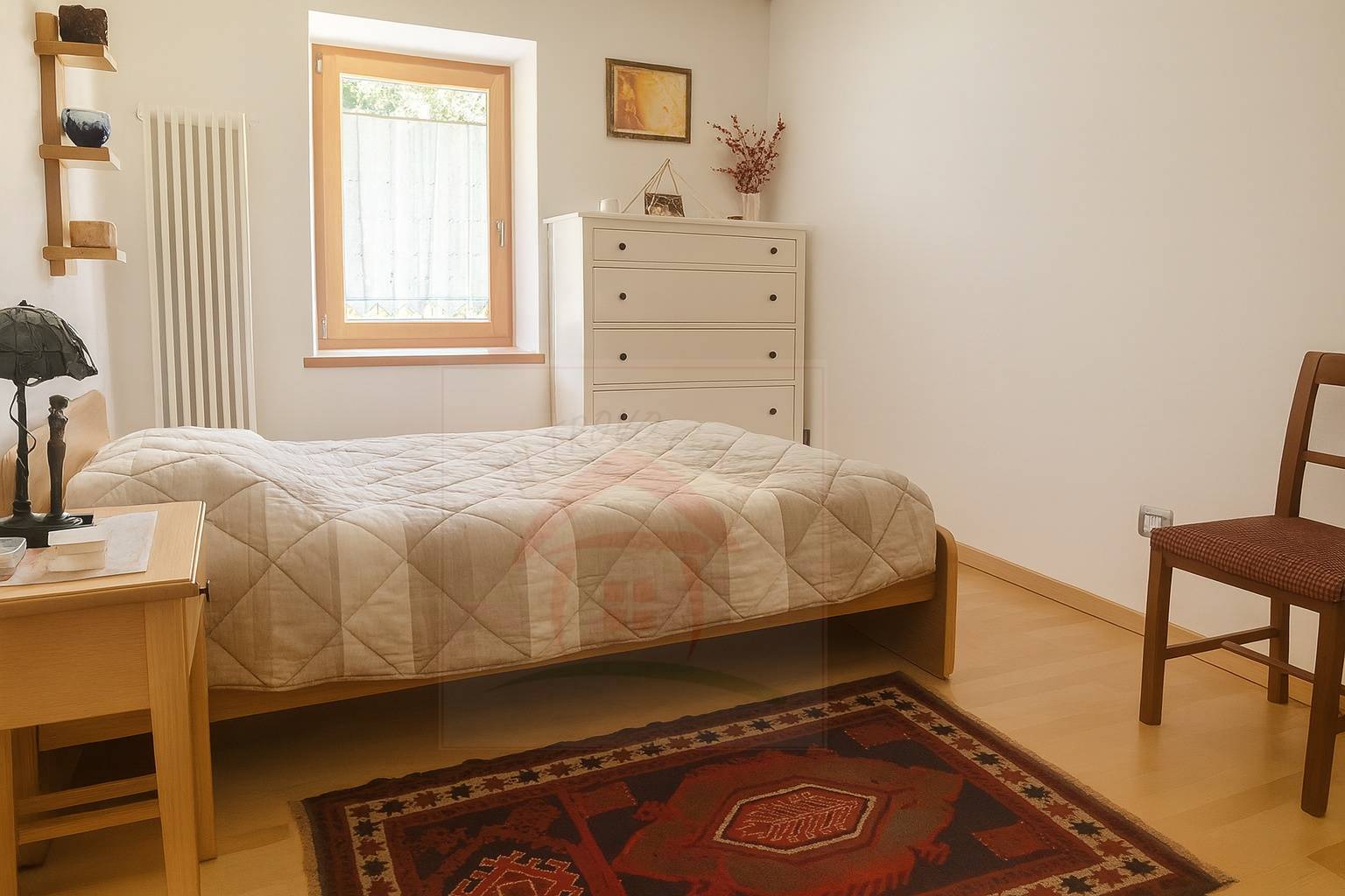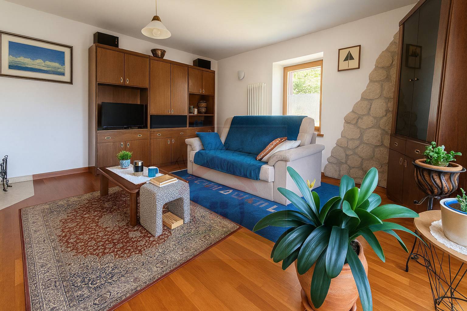 ° DESCRIZIONE DELLAPPARTAMENTO Superficie calpestabile: circa 123 mq Esposizione: libero su quattro lati, con vista panoramica sulle suggestive montagne e la vallata Composizione: Acesso all'appartamento indipendente Ingresso Soggiorno luminoso con angolo cottura Bagno finestrato di ampia metratura con doccia e vasca da bagno Disbrigo Ripostiglio Camera, esposta ad sud Camera/studio con cabina armadio estopsta a est-sud Camera matrimoniale, esposta a nord-ovest Secondo bagno con doccia Locale caldaia Ampia cantina di 30 mq al piano semi interrato Terreno terrazzato di 500 mq lato strada, con legnaia ° STATO E DOTAZIONI L'appartamento si presenta in buono stato di conservazione, con: Pavimenti in parquet di faggio nelle camere e di noce nel soggiorno Serramenti con doppia vetrocamera in PVC L'angolo cucina in ottimo stato Riscaldamento autonomo con caldaia in ottime condizioni e alimentato a GPL Accumolo d'acqua calda collegato ai panelli solari ° AREE COMUNI E SERVIZI Questo appartamento attorno all'immobile dispone di giardino, piazzale e terreni ad uso comune.
