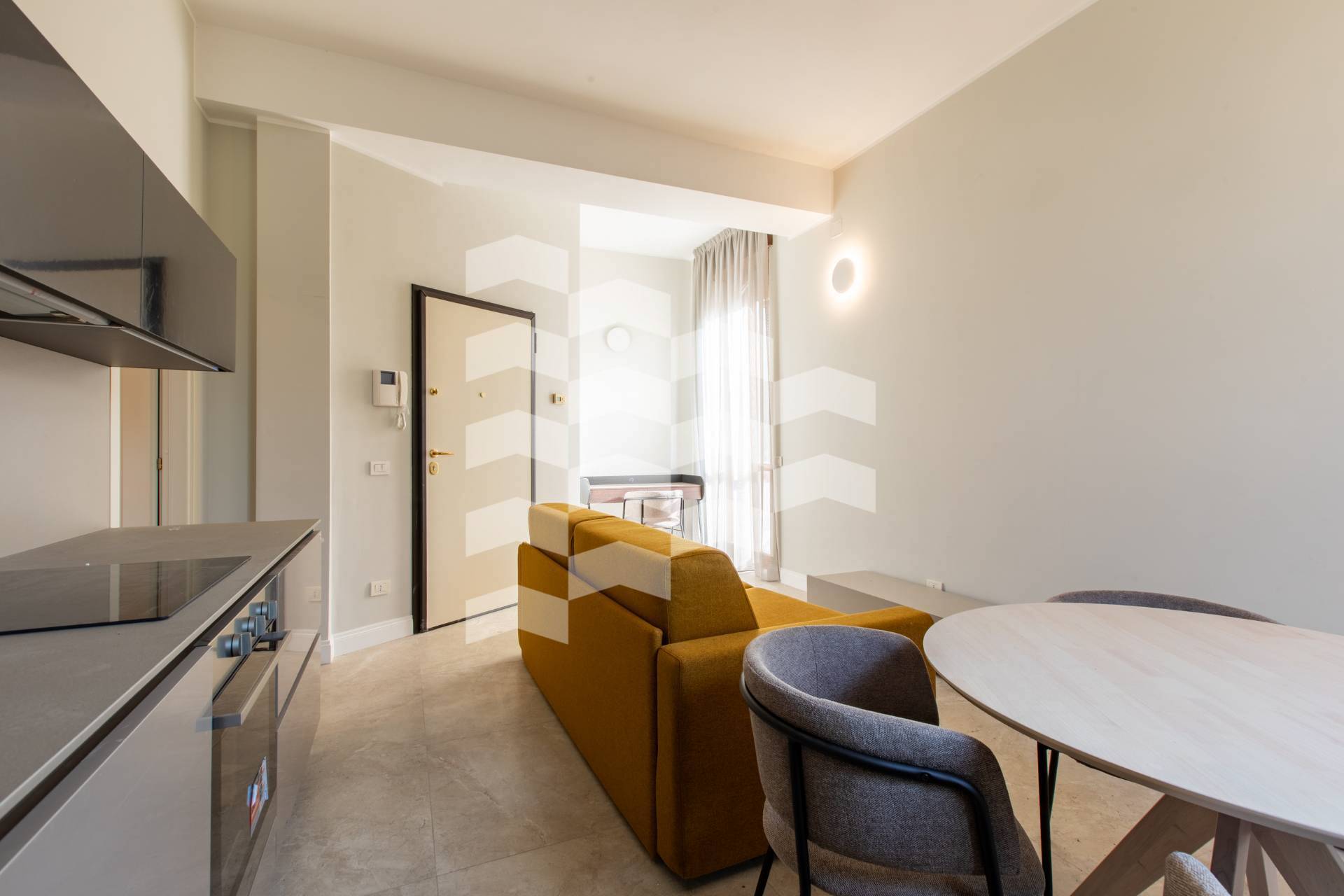 L'immobile, completamente ristrutturato con materiali di pregio e arredato con cura nei minimi dettagli composto da ingresso, un luminoso soggiorno con cucina moderna a vista e con accesso al balcone, una camera da letto matrimoniale e spazioso bagno finestrato con box doccia.