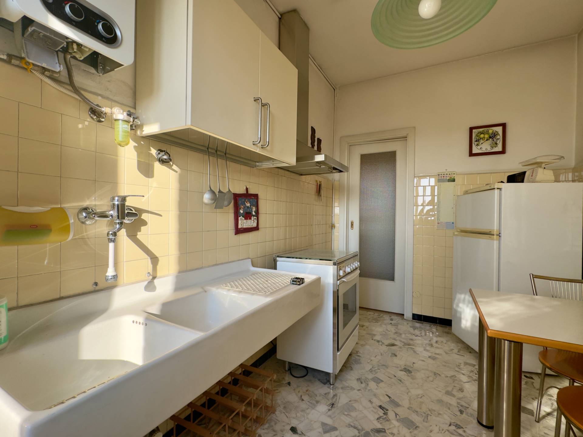 Lappartamento stato ristrutturato circa ventanni fa; le finestre generose dialogano con gli infissi in PVC a doppio vetro, utili per comfort e isolamento.