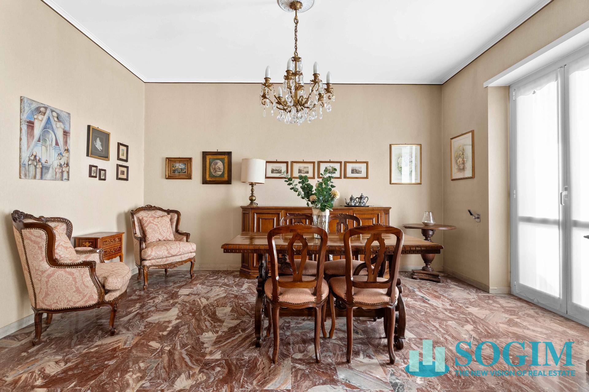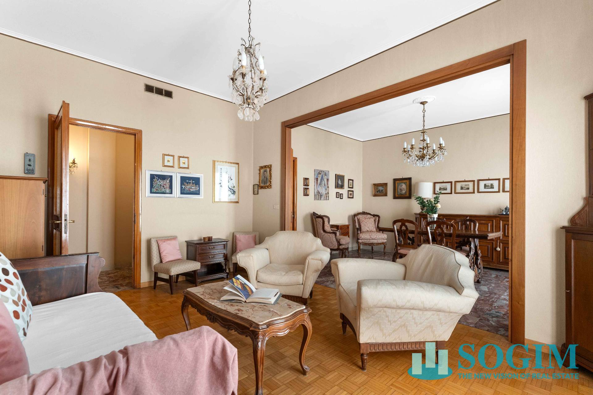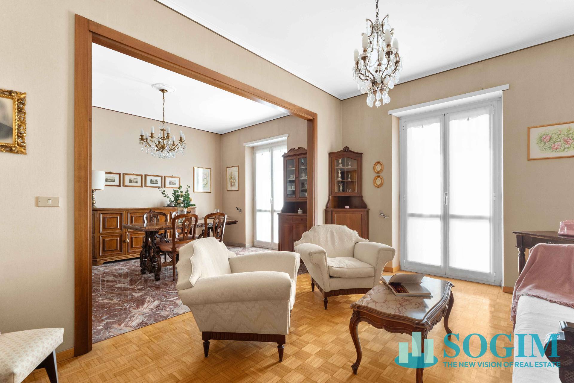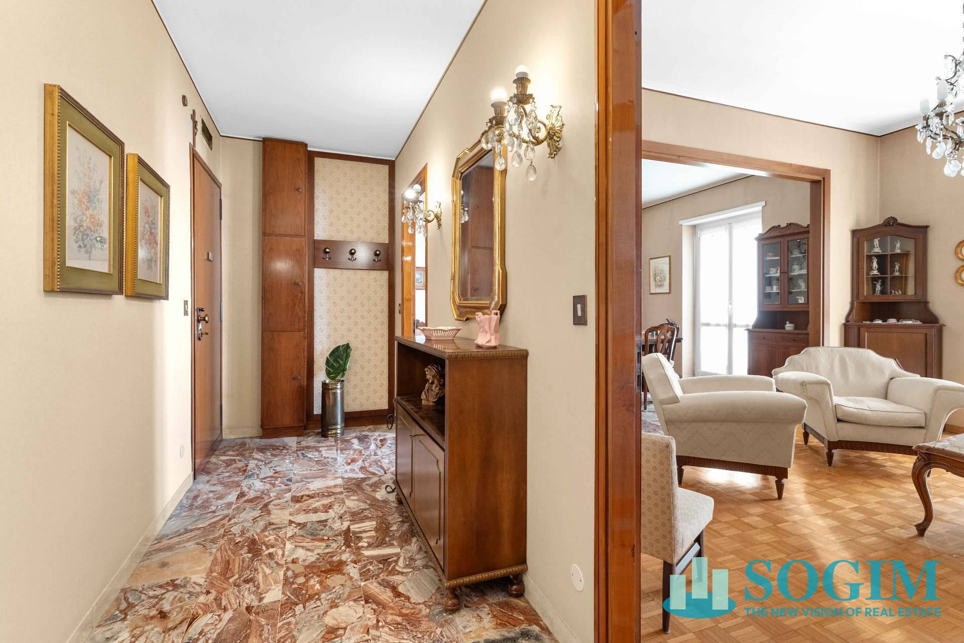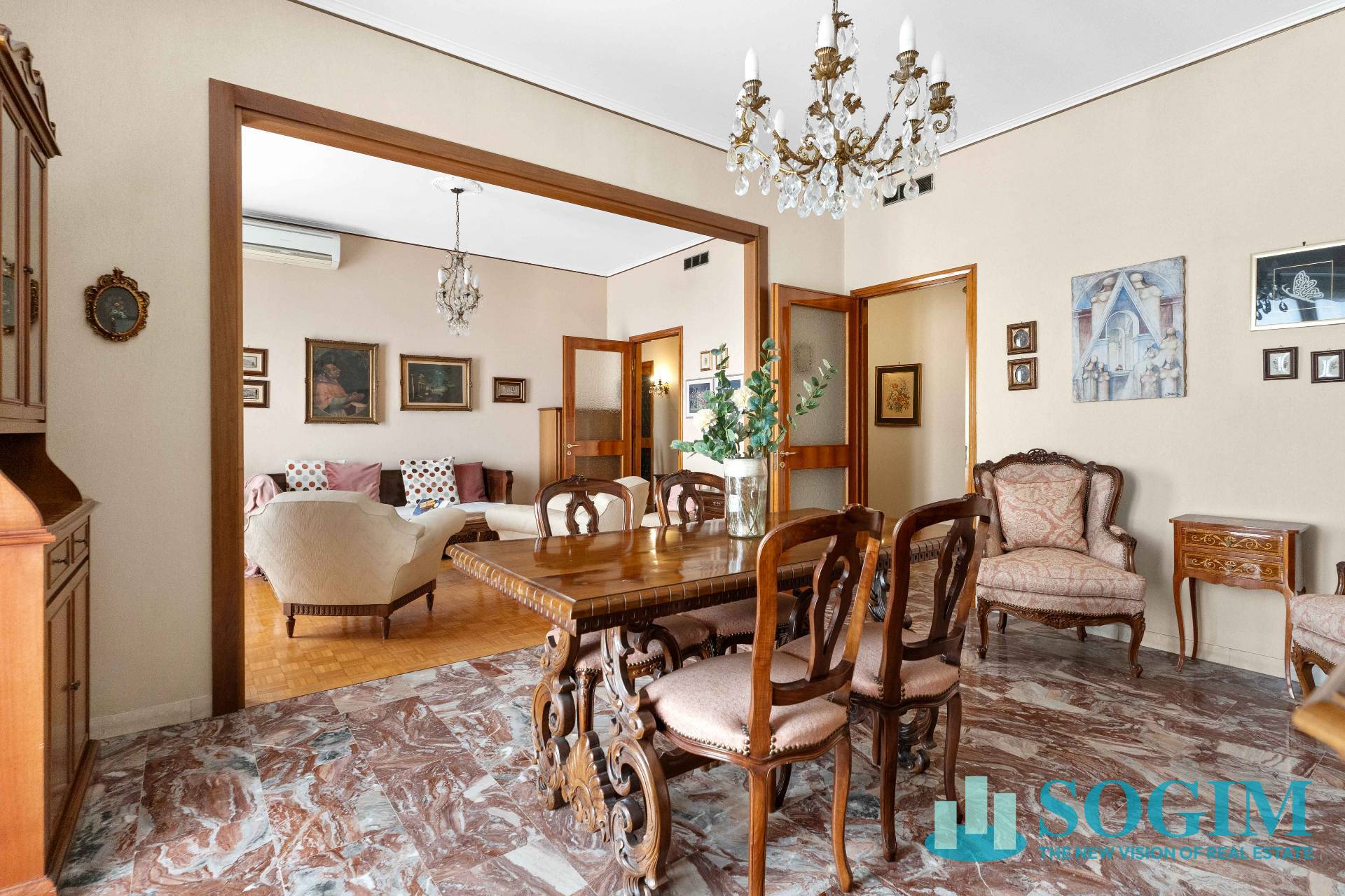 Finiture: pavimenti in marmo e parquet, infissi in legno con doppi vetri, aria condizionata e riscaldamento centralizzato.