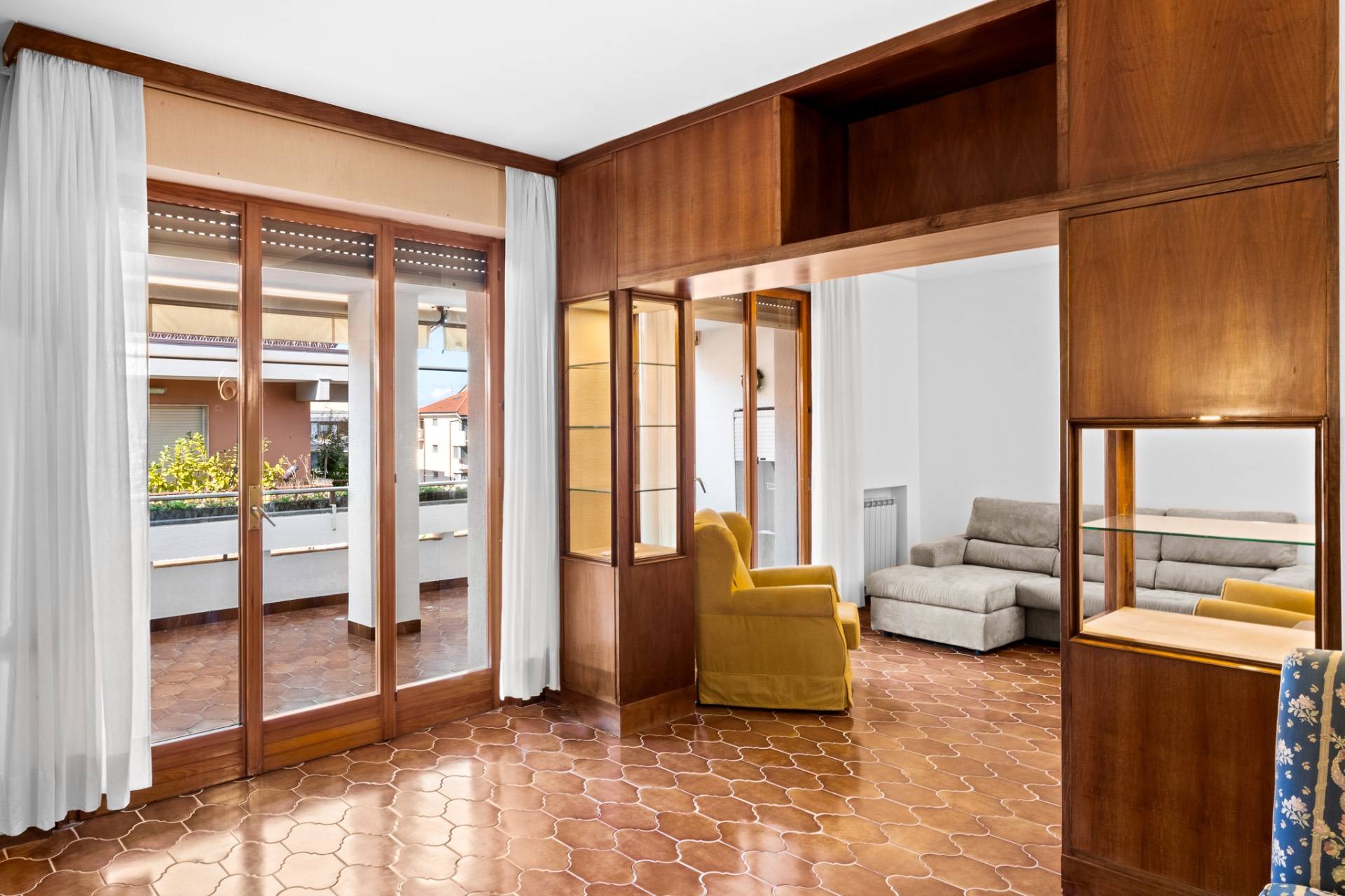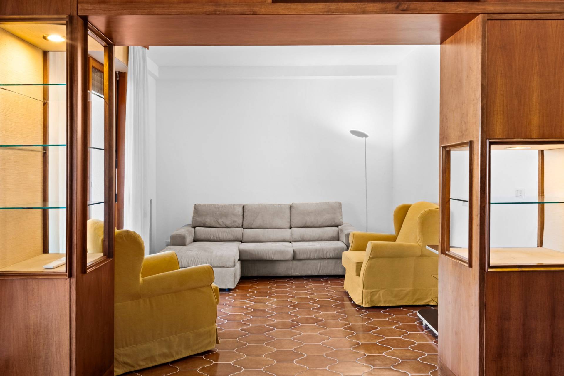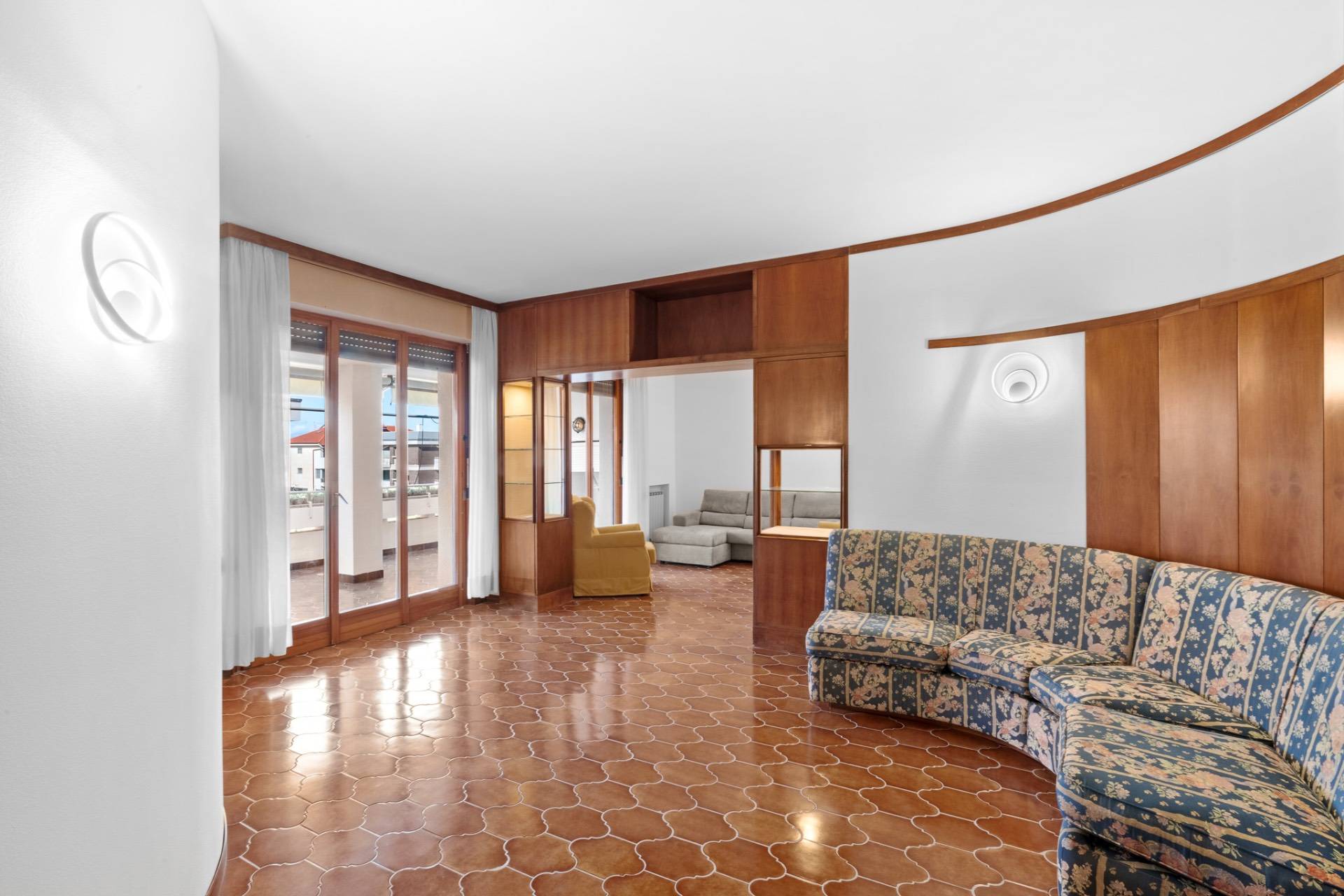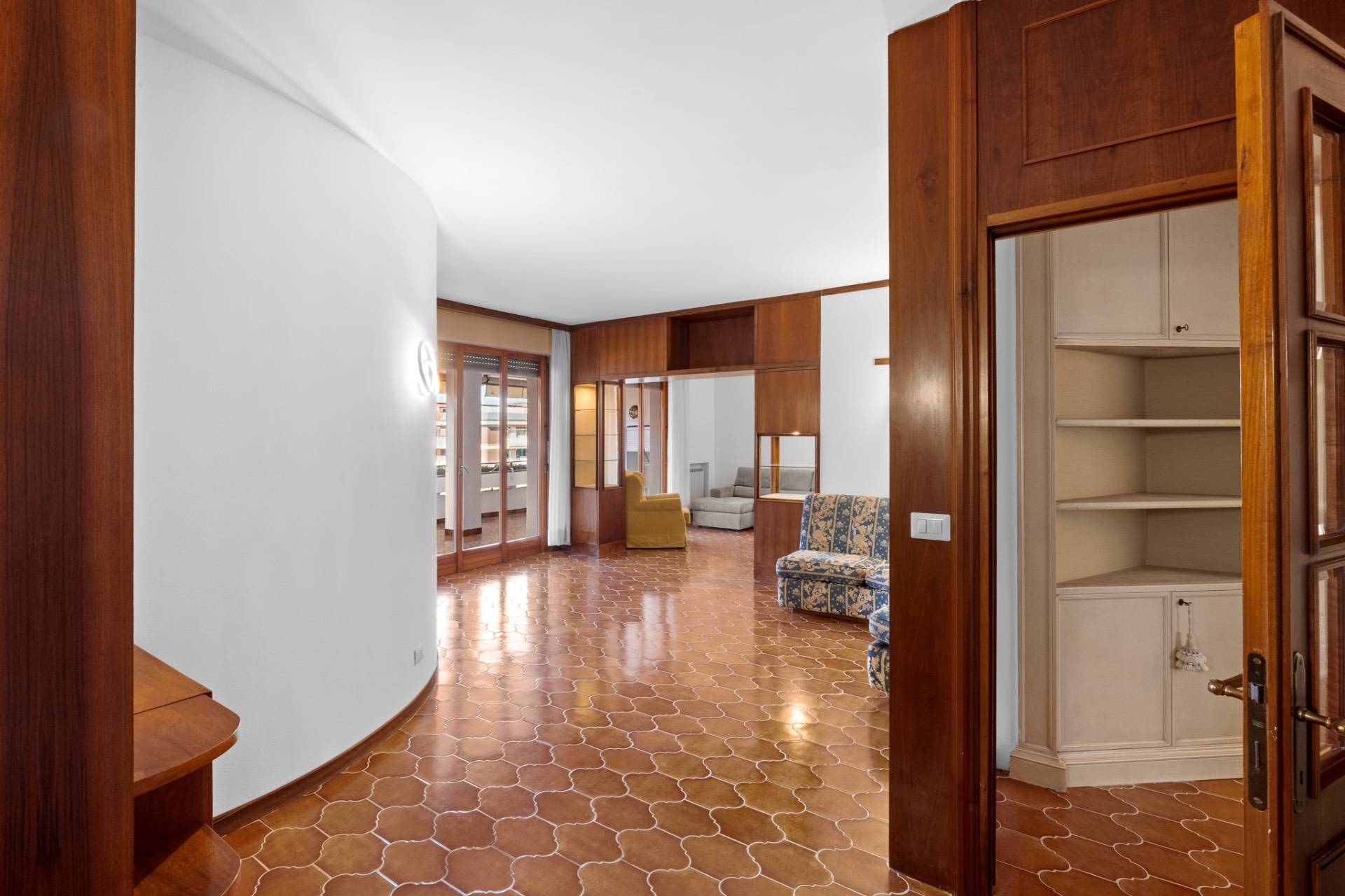 Labitazione si apre su un ingresso accogliente che conduce a un doppio salone di rappresentanza, ampio e luminoso, caratterizzato da ampie porte-finestre che permettono laccesso diretto al terrazzo coperto: uno spazio perfetto per pranzi allaperto, momenti di relax o serate conviviali in ogni stagione dellanno.