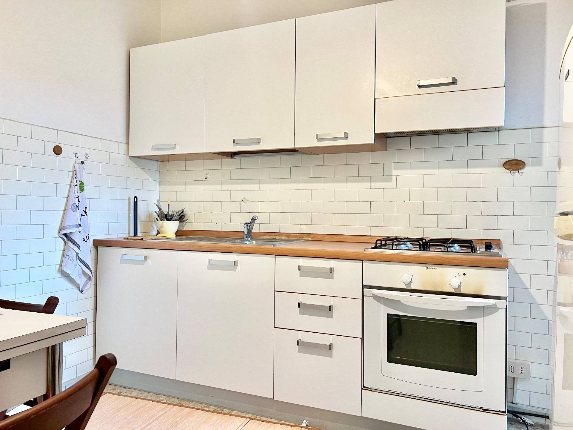 La cucina abitabile, anchessa con uscita a un secondo balcone, perfetta per chi ama cucinare e vivere la casa in modo pratico e confortevole.
