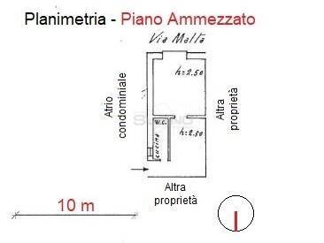 L'appartamento, posto al piano ammezzato dello stabile, presenta al suo interno: ingresso su area giorno con angolo cottura, bagno e camera da letto.