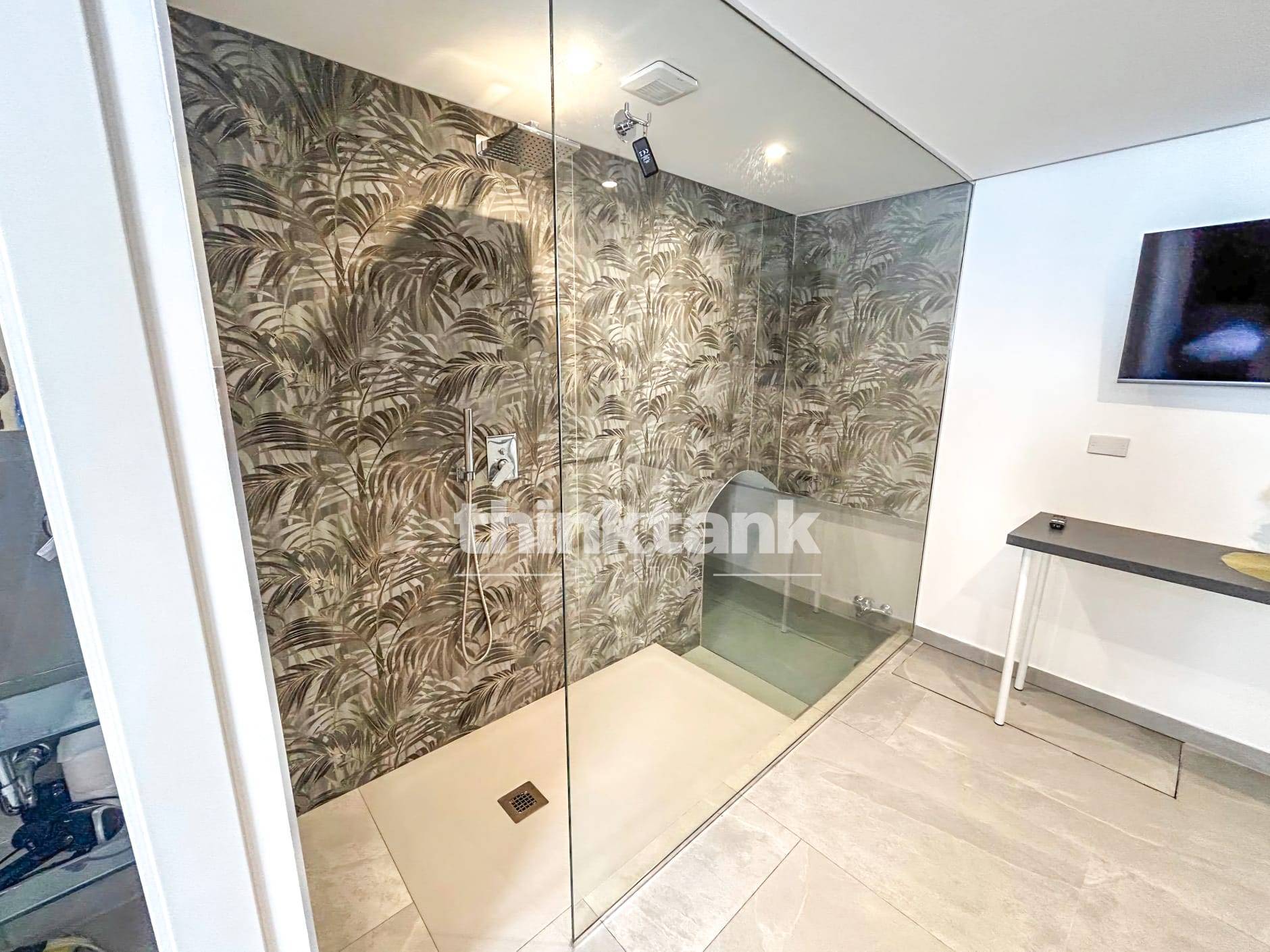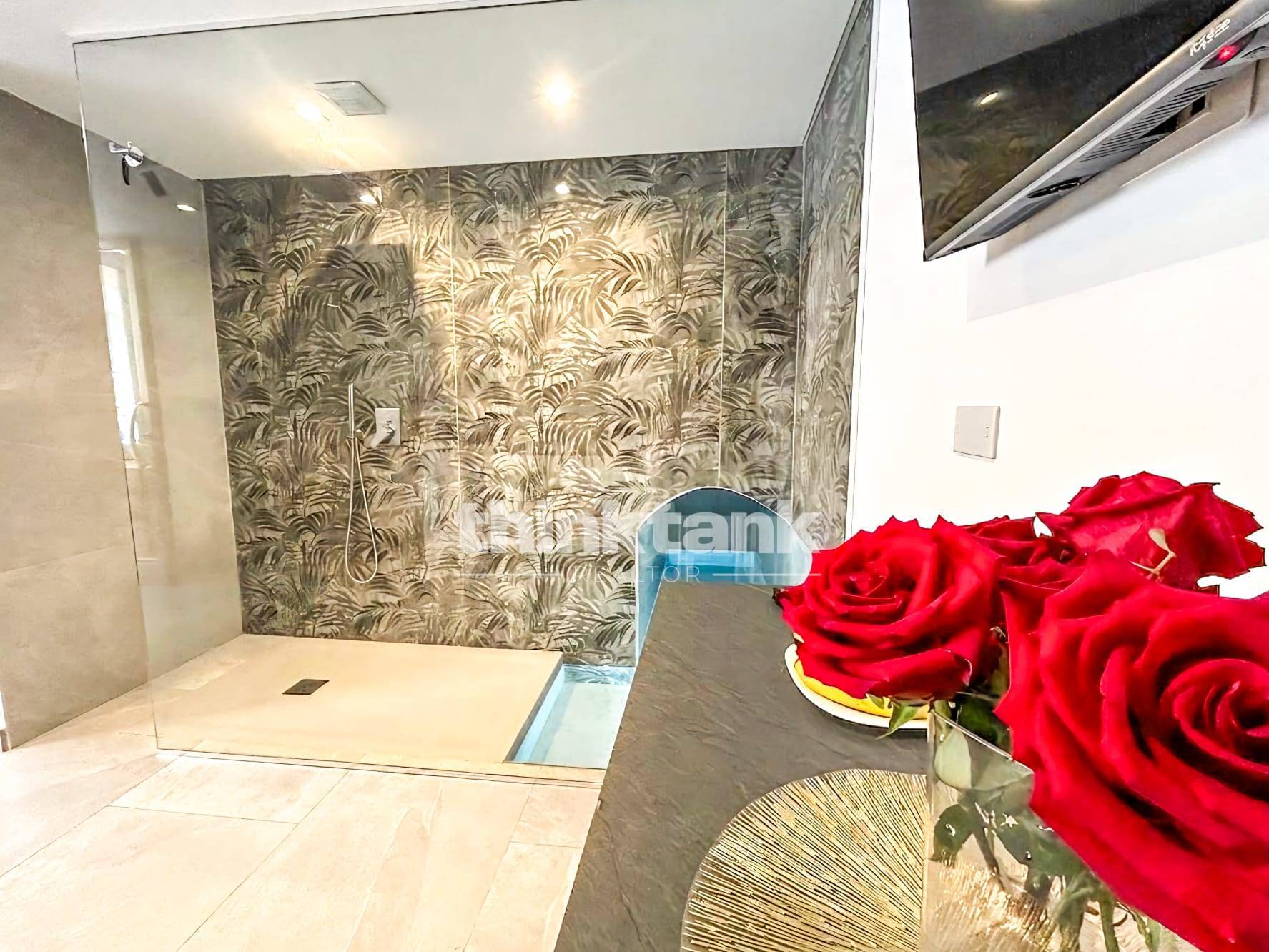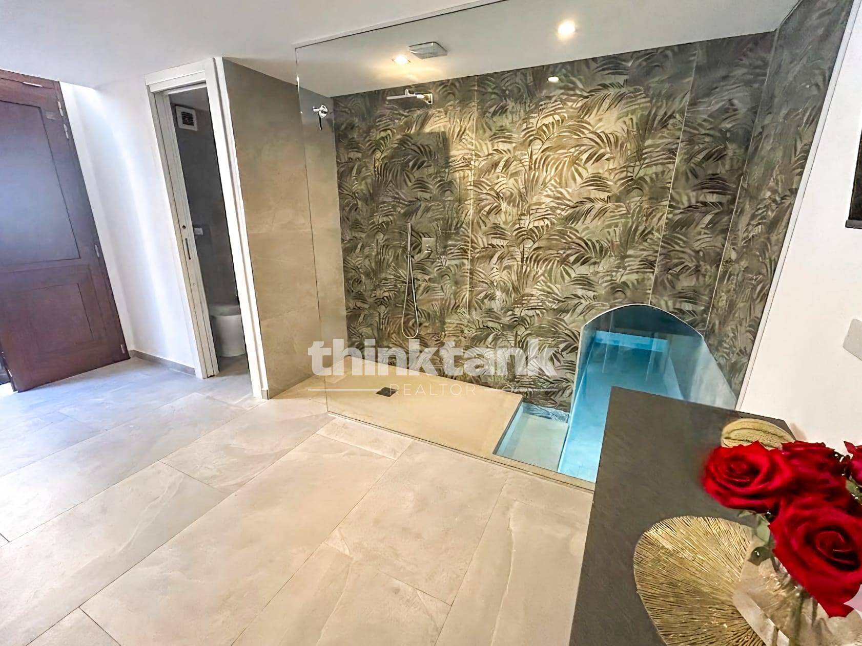 Al piano principale troviamo un bagno completo con ampia doccia e accesso diretto a una raffinata vasca idromassaggio, oltre a sanitari moderni con sistema water-bidet.