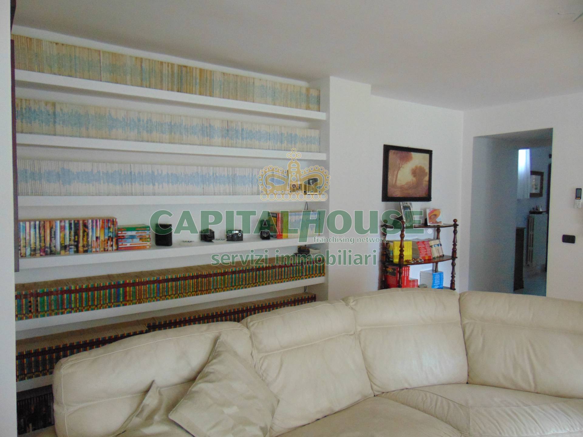 L'appartamento ha una metratura interna di 120 mq ed cosi suddiviso ingresso, ampio salone con angolo cottura, camera matrimoniale con cabina armadio e bagno in camere, due camere e bagno.