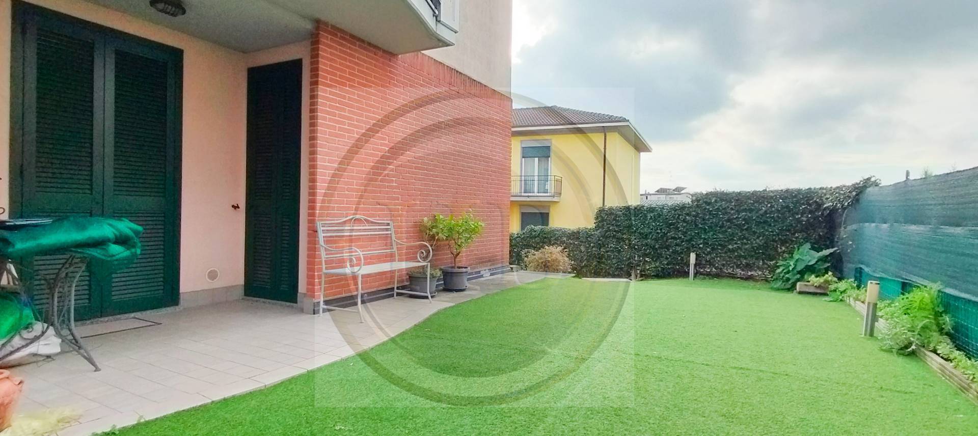 Labitazione termoautonoma composta da ingresso, soggiorno con balcone, cucina con uscita sul giardino, disimpegno, 1 bagno completo di cabina idro/doccia, ripostiglio/lavanderia, camera matrimoniale con balcone, cameretta; giardino esclusivo di prato sintetico su 2 lati, luminoso e soleggiato, illuminazione piantumazione e siepe.