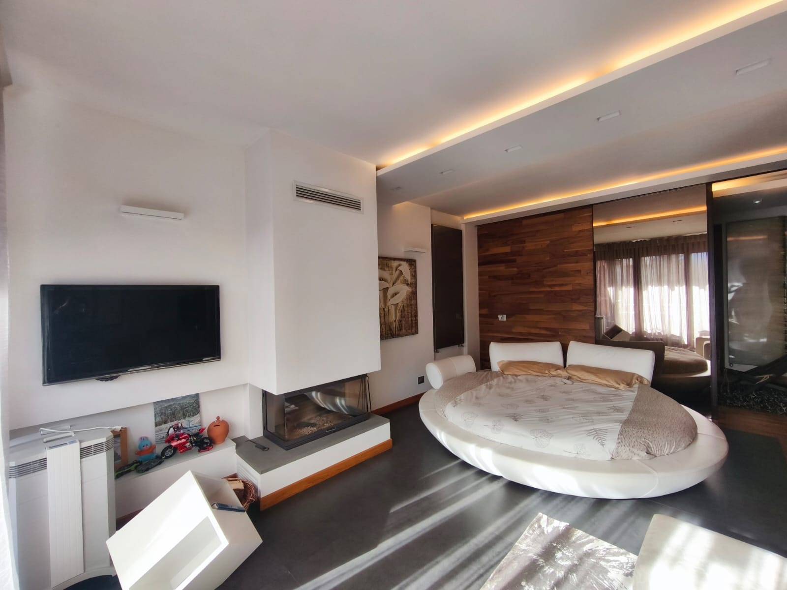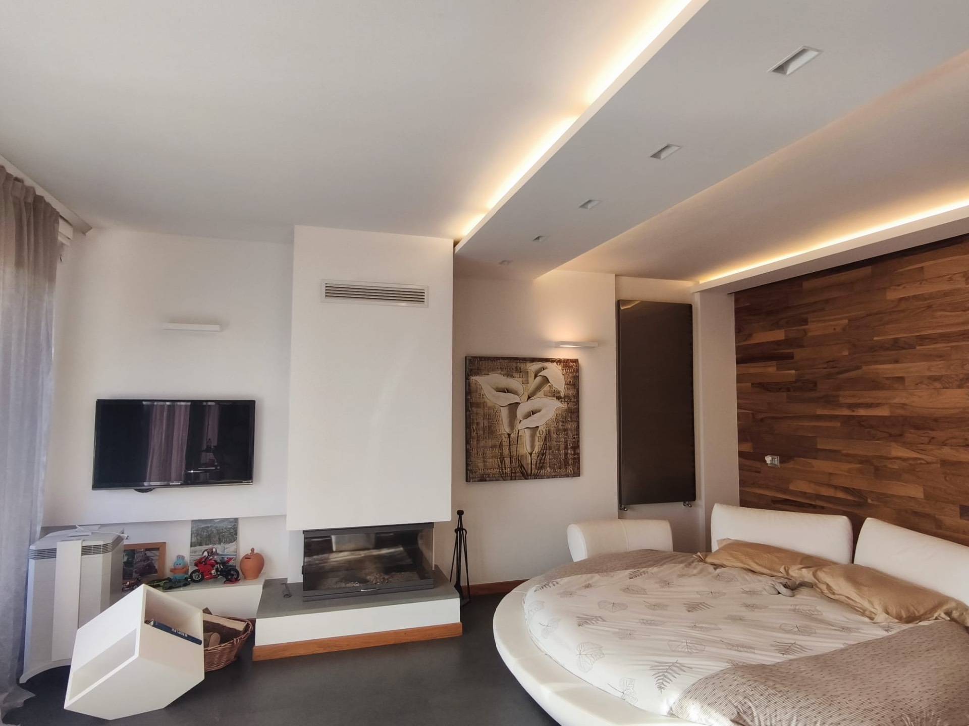 Labitazione si sviluppa in un elegante open space dove cucina a vista, zona living con camino e area notte si integrano armoniosamente, creando un ambiente caldo, accogliente e funzionale.
