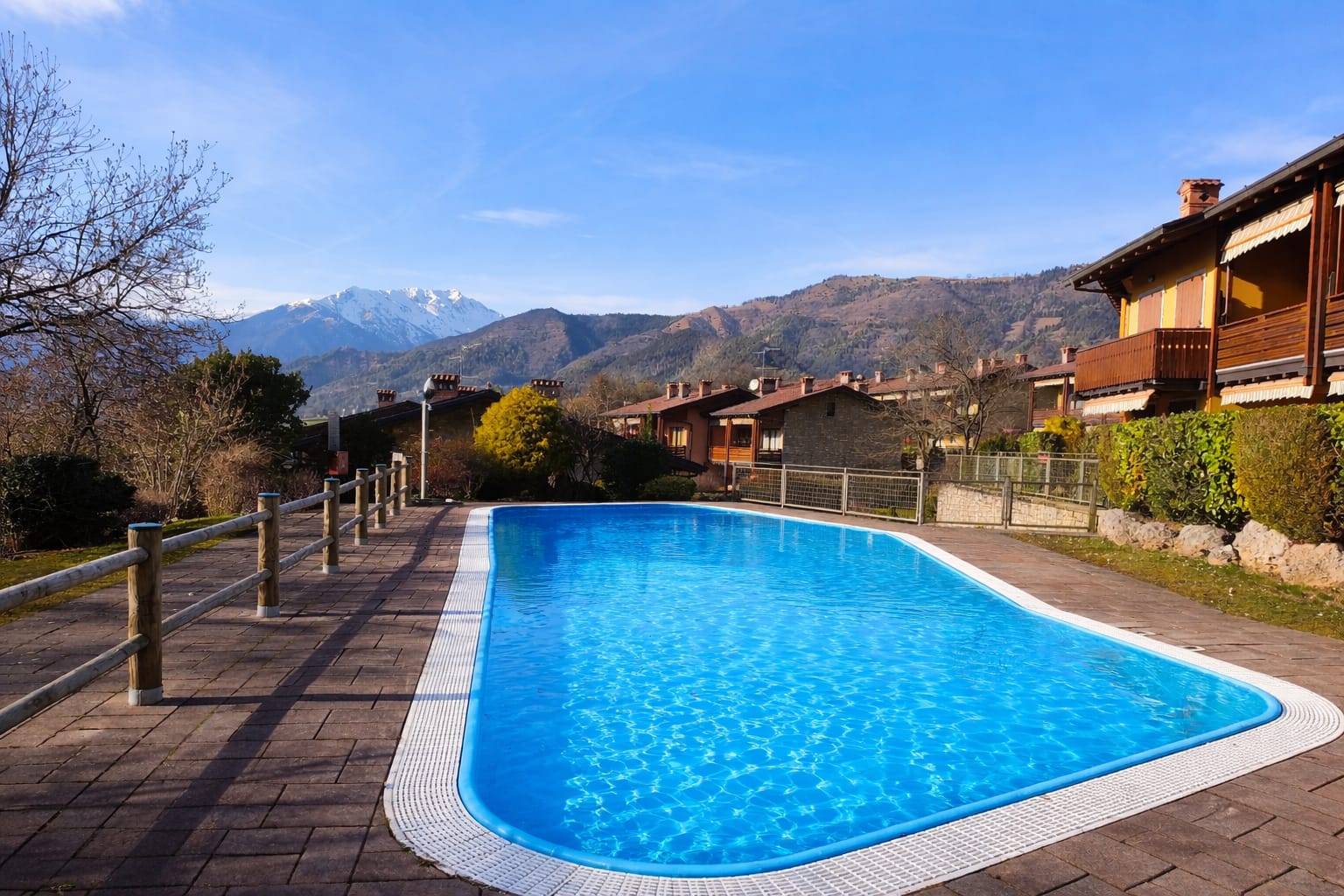 ESCLUSIVO APPARTAMENTO CON GIARDINO, TERRAZZI E AREA RELAX Nel cuore di Songavazzo, in un borgo tranquillo e silenzioso immerso nel verde,con splendida vista panoramica e piscina, proponiamo un raffinato appartamento al piano terra inserito in una residenza curata e ben mantenuta.