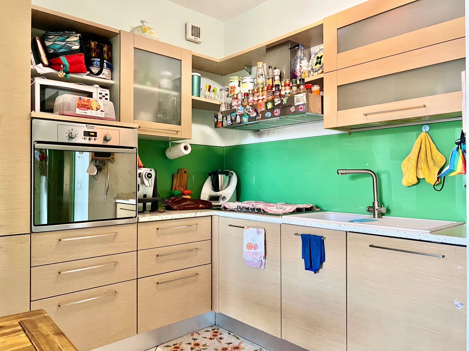 Limmobile si compone di un soggiorno molto luminoso con angolo cottura e accesso al balcone, una camera matrimoniale, una camera singola (entrambe con accesso a un secondo balcone), un primo bagno cieco con doccia, disimpegno con armadio a muro e dove situata al suo interno anche la caldaia, secondo bagno cieco di servizio adibito a zona lavanderia.