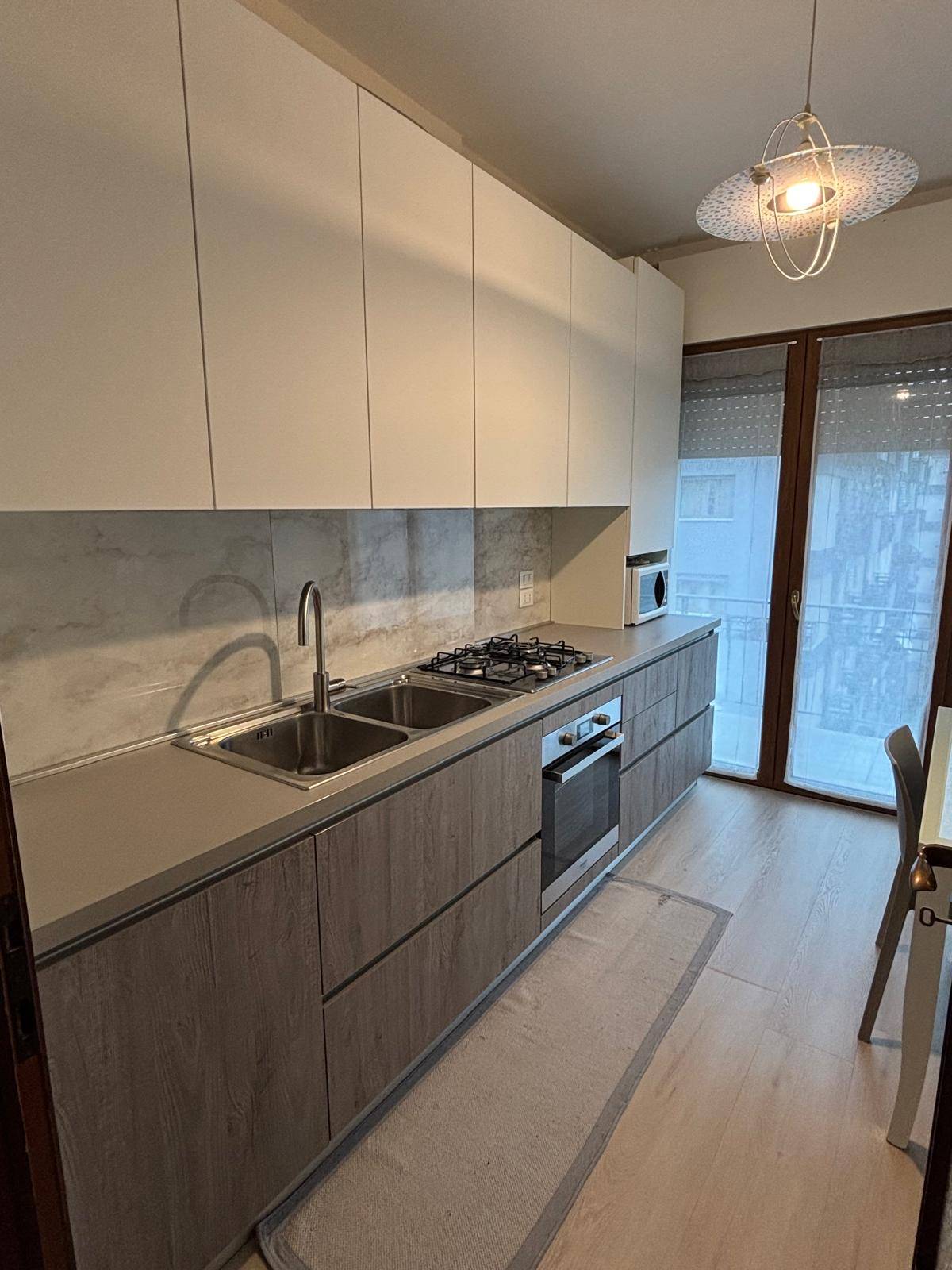 La cucina separata e completamente attrezzata, mentre la zona notte composta da due camere da letto matrimoniali e due bagni.