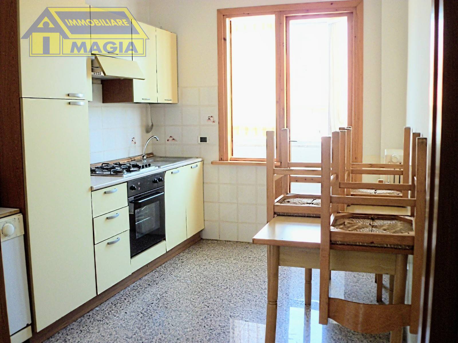 L' immobile, in buono stato di manutenzione, composto internamente da ingresso su un ampio soggiorno, cucina abitabile con veranda, zona notte con disimpegno, due camere da letto matrimoniali, un bagno con vasca e box doccia, oltre ad un balcone.
