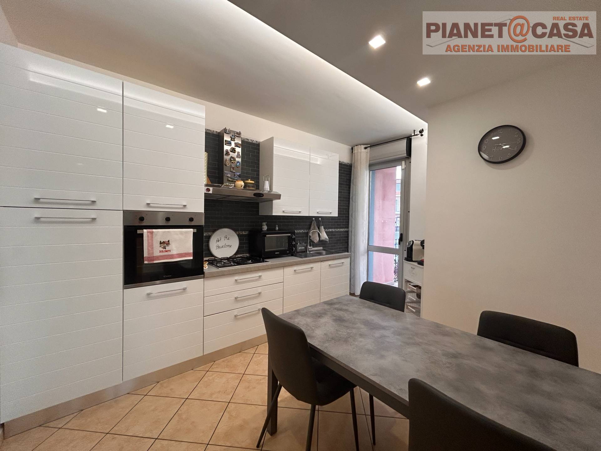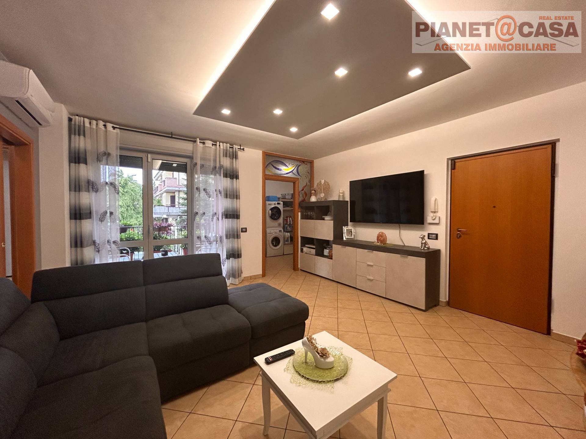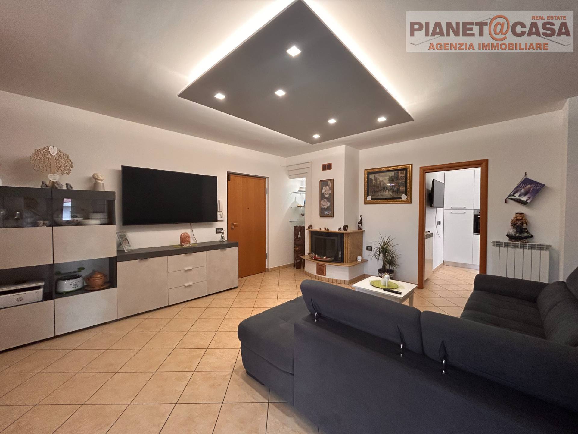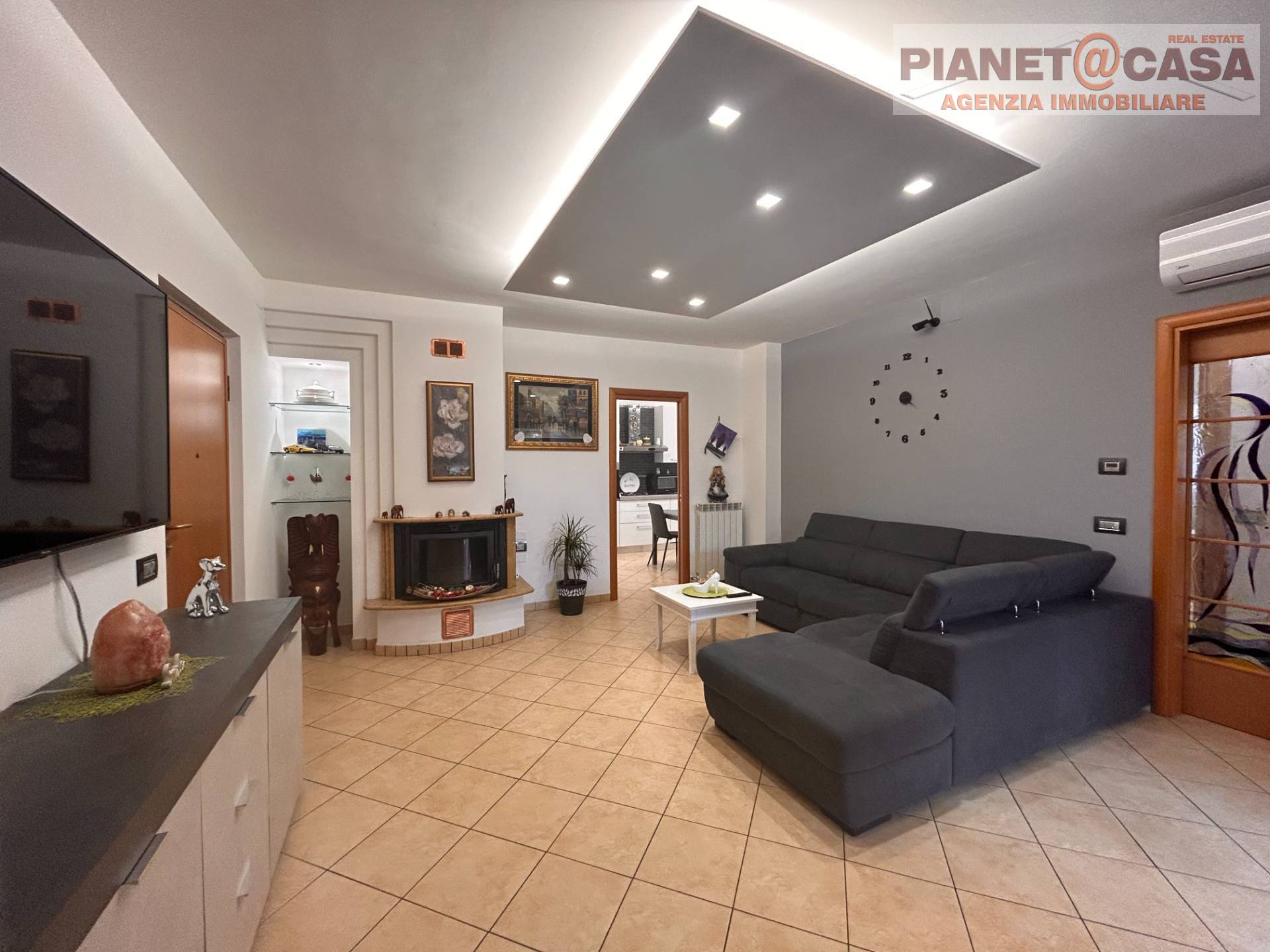 L' immobile, posto al Piano Primo con Ascensore in palazzina di recente costruzione, composto da ingresso su ampio Soggiorno con camino, Cucina abitabile, Disimpegno, tre Camere da letto di cui una matrimoniale, una doppia ed una singola, due Bagni entrambi con doccia, oltre ad un ampio Terrazzo e due Balconi.