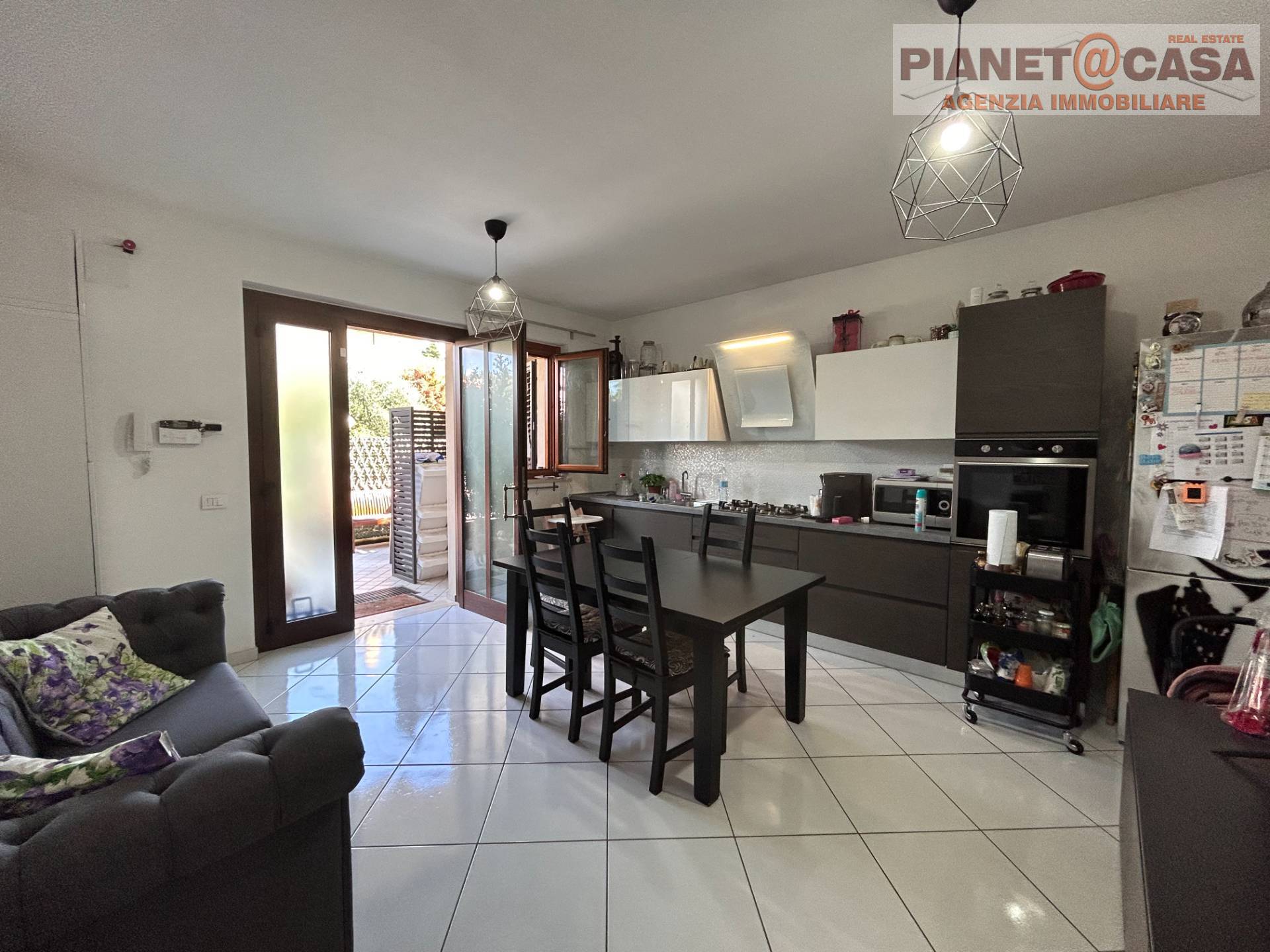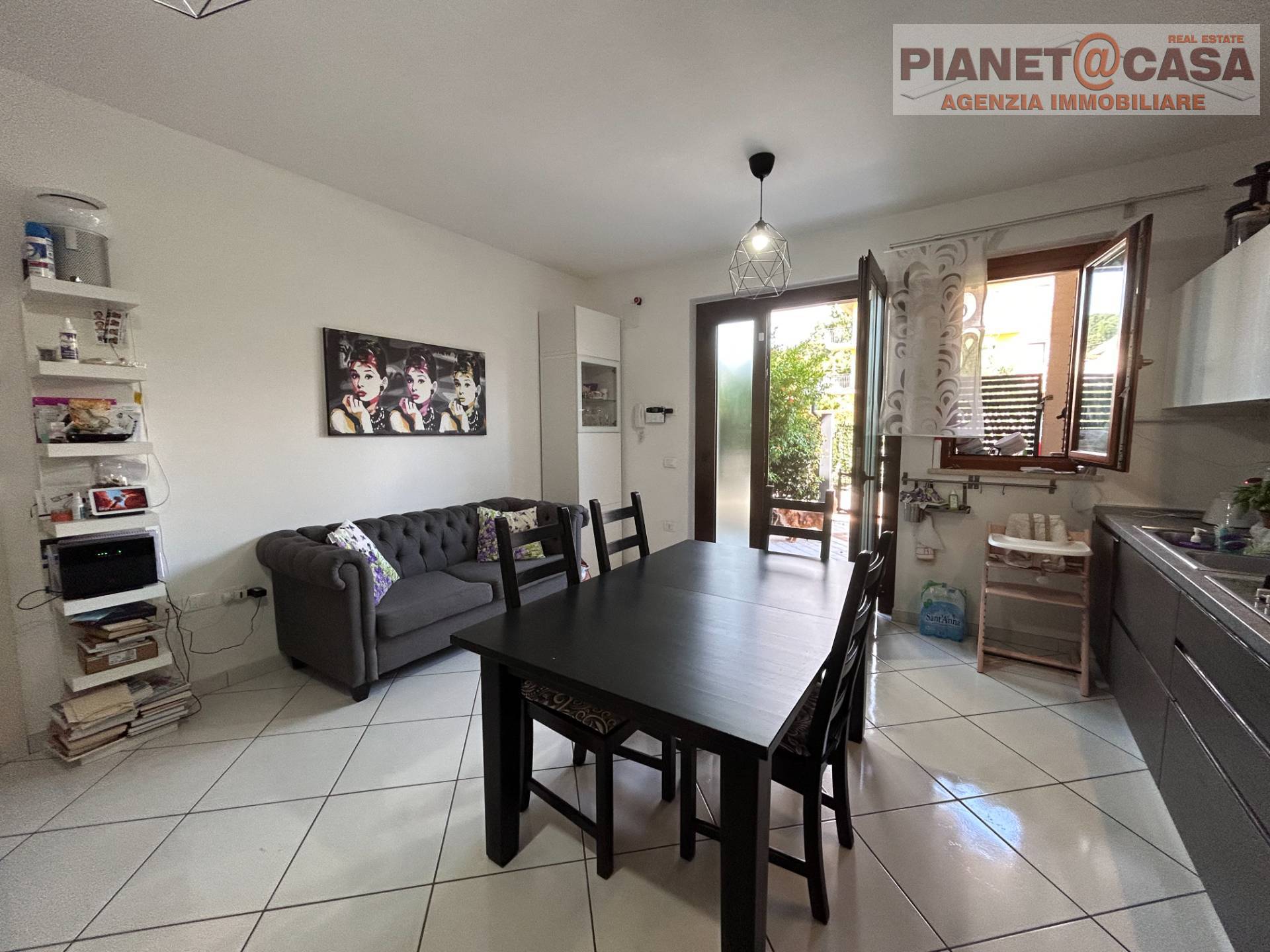 L' immobile composto da ingresso su ampio soggiorno con angolo cottura, una camera da letto matrimoniale, una cameretta, un bagno con finestra, un locale lavanderia nel quale possibile realizzare il secondo bagno, oltre ad una corte perimetrale esclusiva di circa 60 mq. in parte pavimentata ed in parte adibita a giardino.