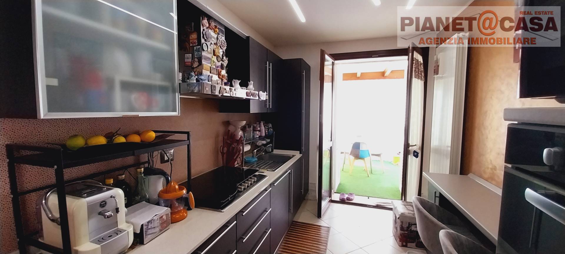L' immobile, posto al Piano Terra in palazzina di recente costruzione e con poche unit abitative, composto da ingresso su soggiorno con stufa a pellet, cucina a vista con accesso alla veranda realizzata con tettoia lamellare, piccolo disimpegno, due camere da letto di cui una matrimoniale ed una singola ed un bagno.