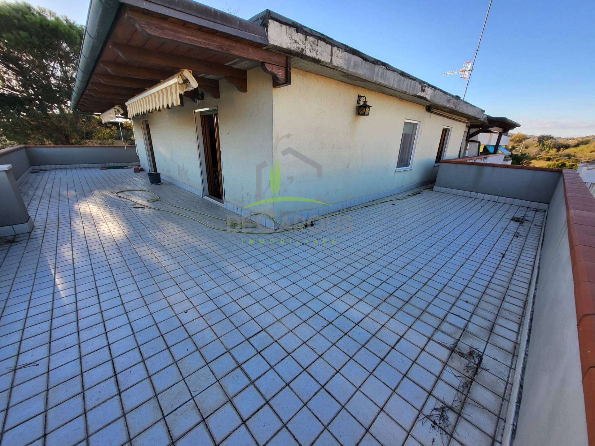 L'appartamento cos composto: ingresso, ampio soggiorno con camino e cucina abitabile a vista, disimpegno, uno studio, un bagno, due camere matrimoniali, a completare la propriet ci sono due enormi e comodi terrazzi con splendida esposizione e visuale ad uso esclusivo.