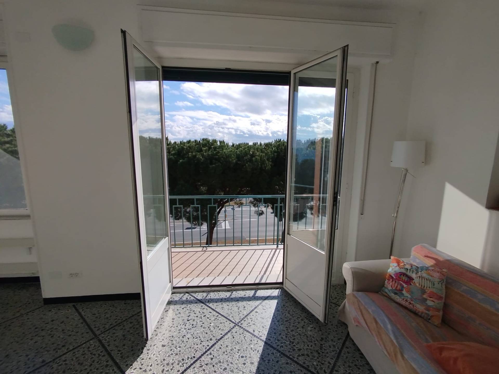 L' appartamento di oltre 100 mq. si compone di ingresso, ampio soggiorno servito da balconata con vista sull' isolotto di Bergeggi e sul mare e cucinotto finestrato completa la zona giorno.