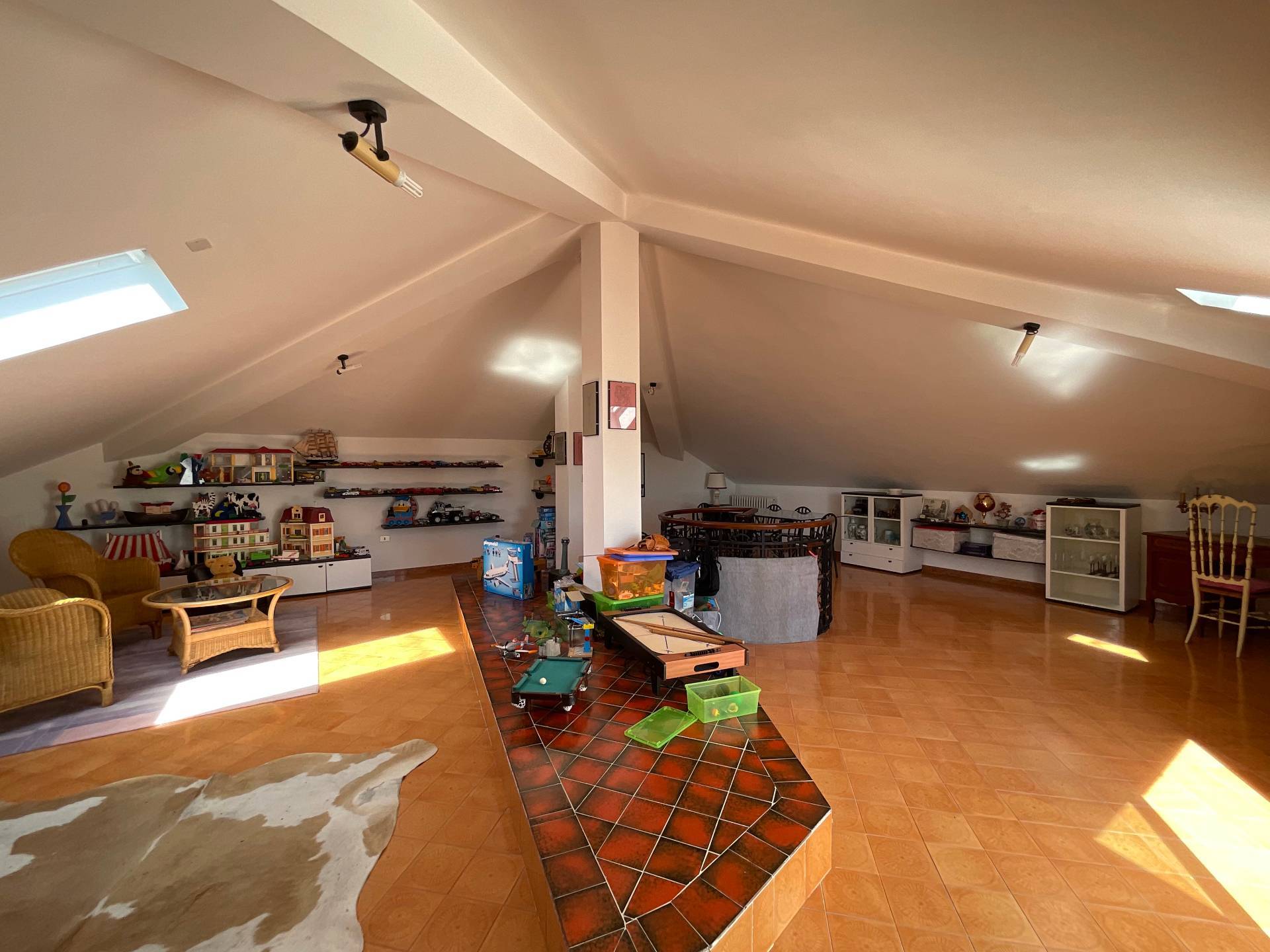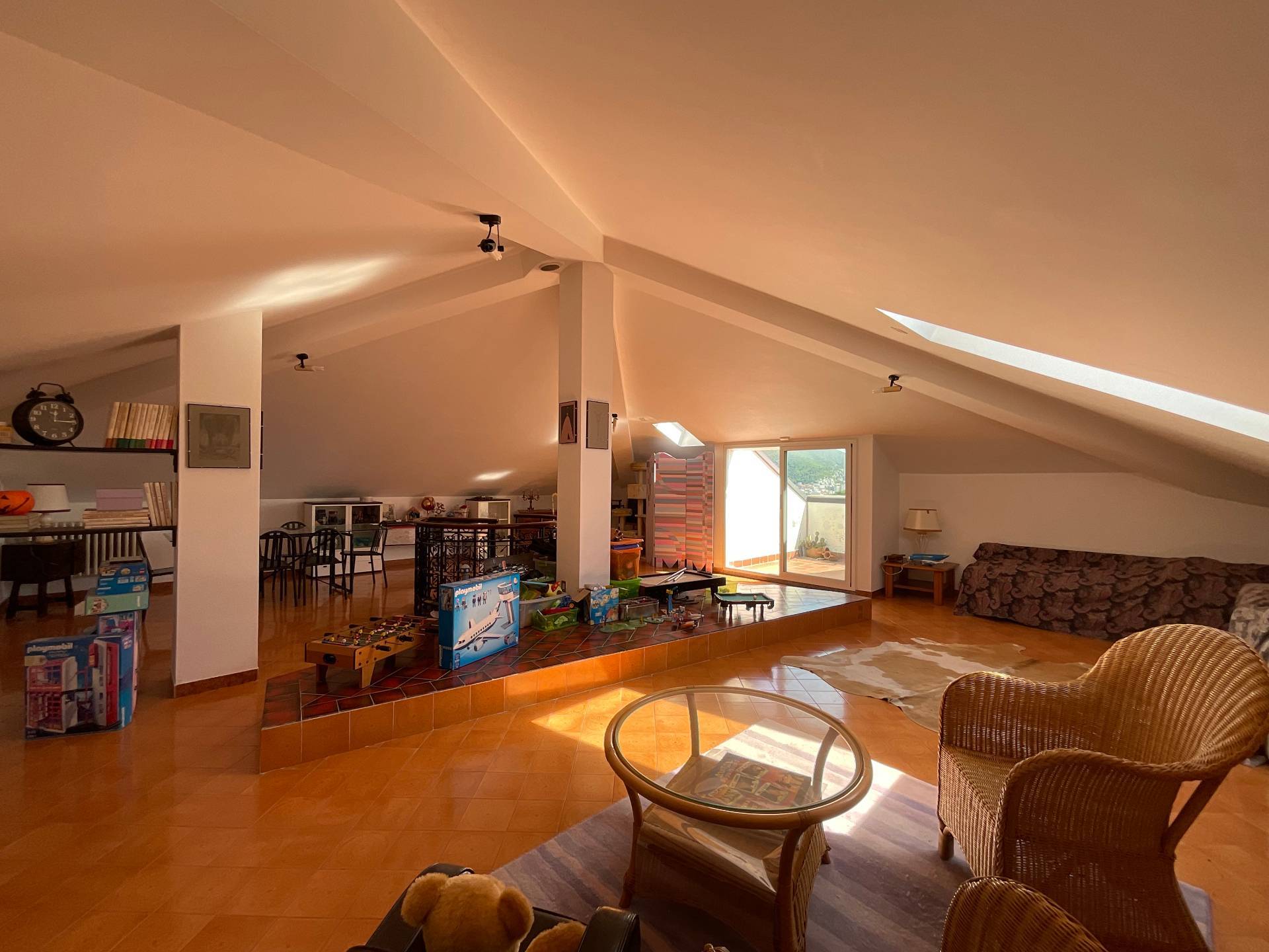 L'appartamento si compone di ingresso su ampio living con cucina a vista, camere da letto matrimoniale, bagno finestrato e grande terrazza privata di 60 mq. con vista mare. Al piano superiore, raggiungibile da scala interna, abbiamo una grande mansarda abitabile da personalizzare di oltre 70 mq. con grazioso terrazzino a tasca vista mare. In mansarda possibile creare facilmente una grande zona notte composta da 2 camere da letto e bagno; oppure un ulteriore appartamento bilocale con zona giorno, camera da letto e bagno.