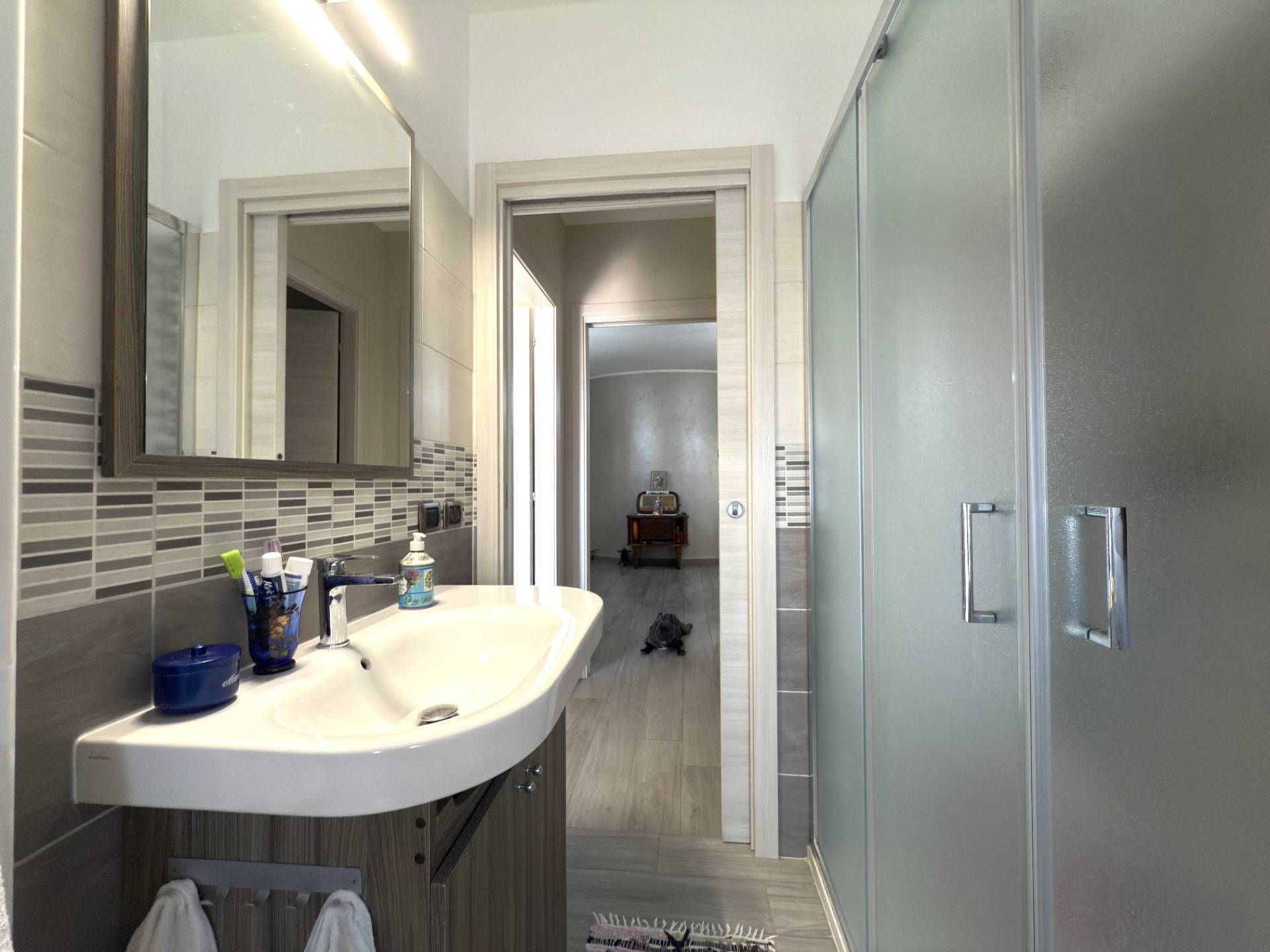 Completano la propriet un garage doppio di circa mq.25 e una cantina di circa mq.20 al piano seminterrato, oltre posto auto in corte condominiale recintata.