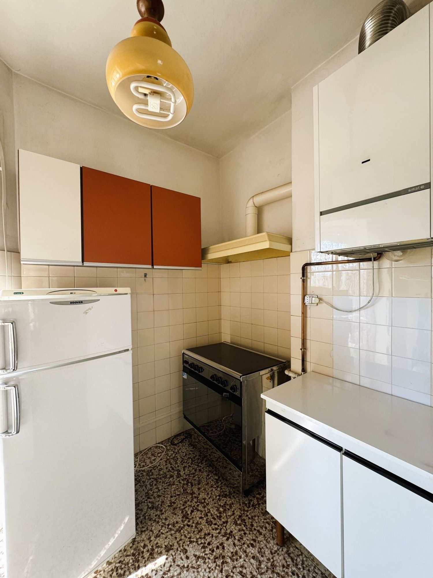 Al quarto piano con ascensore, questo appartamento dispone di un salone spazioso, una cucina abitabile, due camere matrimoniali, una cameretta, un bagno, una veranda e un balcone.
