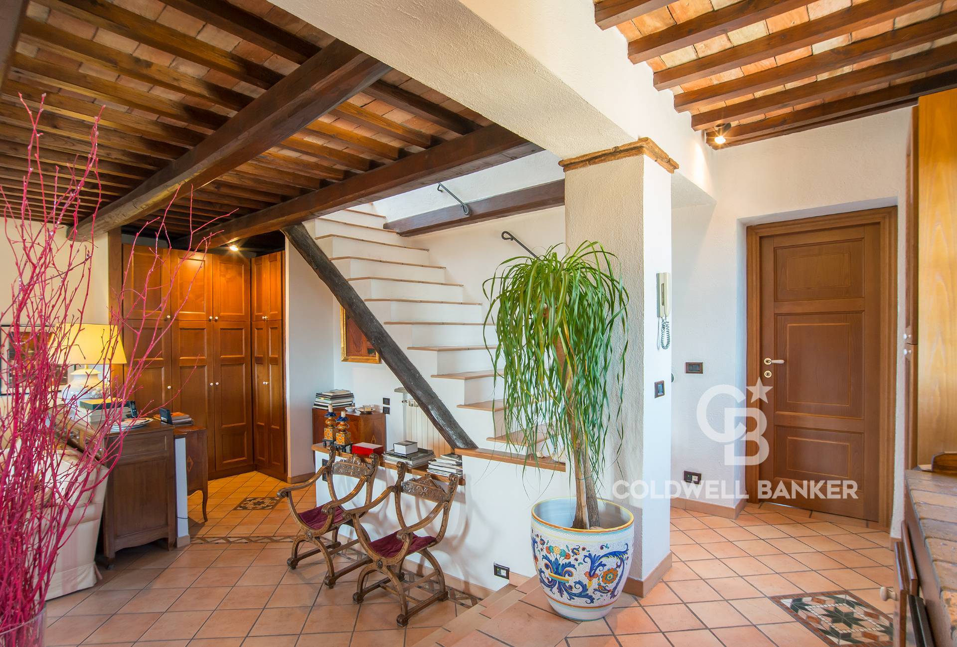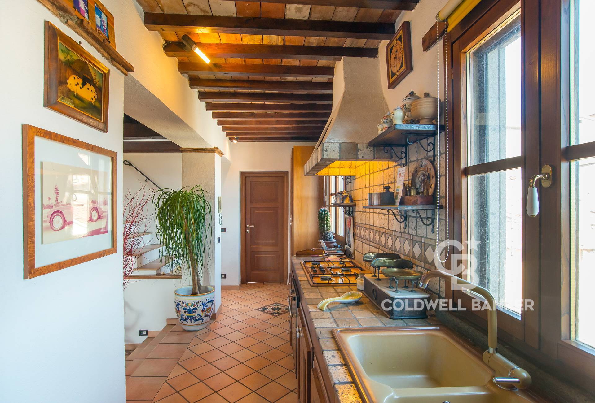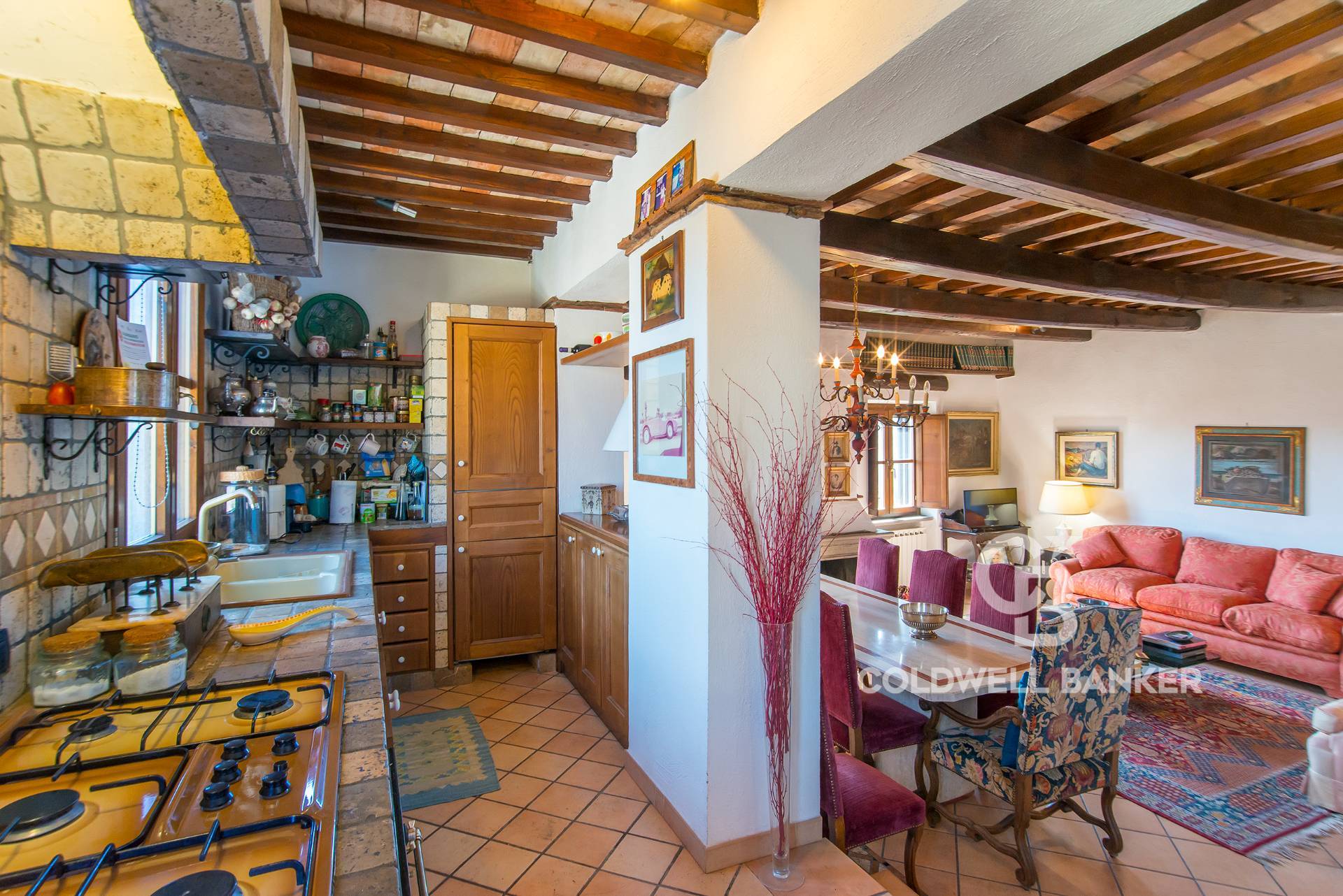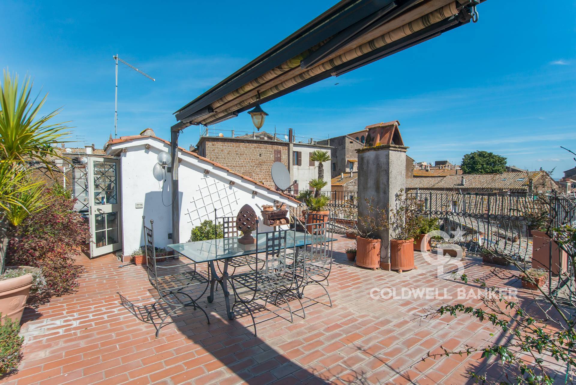 Limmobile stato completamente e finemente ristrutturato con materiali di pregio, pavimenti in cotto con preziosi intarsi, e capienti armadiature su misura; le soglie delle finestre, i gradini e la cornice dello splendido e grande camino sono in pregiato peperino, gli stupendi e alti soffitti sono con travi originali in legno, zone e nicchie con peperino a vista, cucina perfettamente arredata ed equipaggiata e doppi bagni in muratura, scale in pietra naturale e legno.