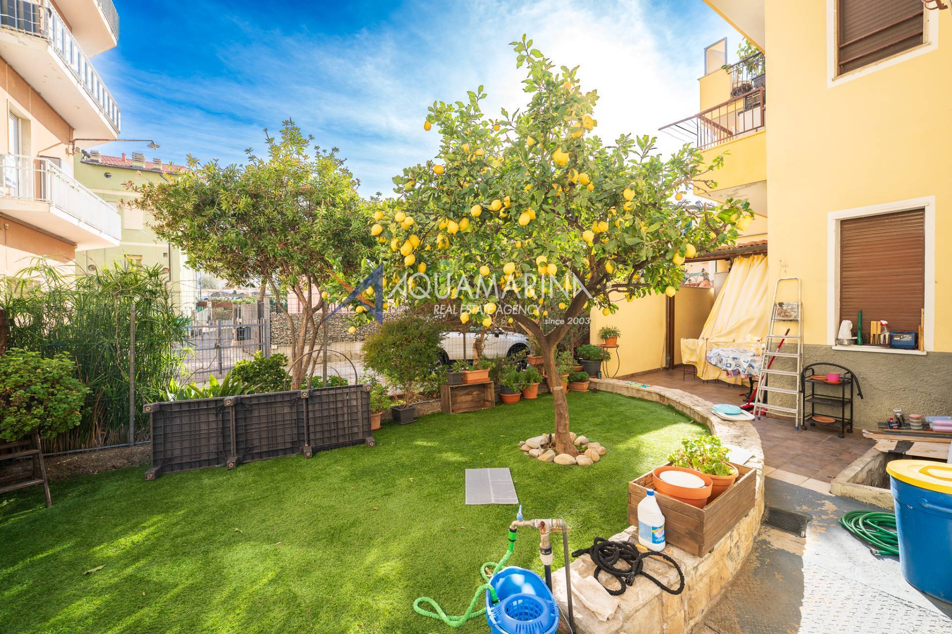Arma di Taggia, a pochi passi dalle rinomate spiagge e vicino a tutti i principali servizi, proponiamo in vendita un ampio appartamento al piano terra con giardino e corte privata.