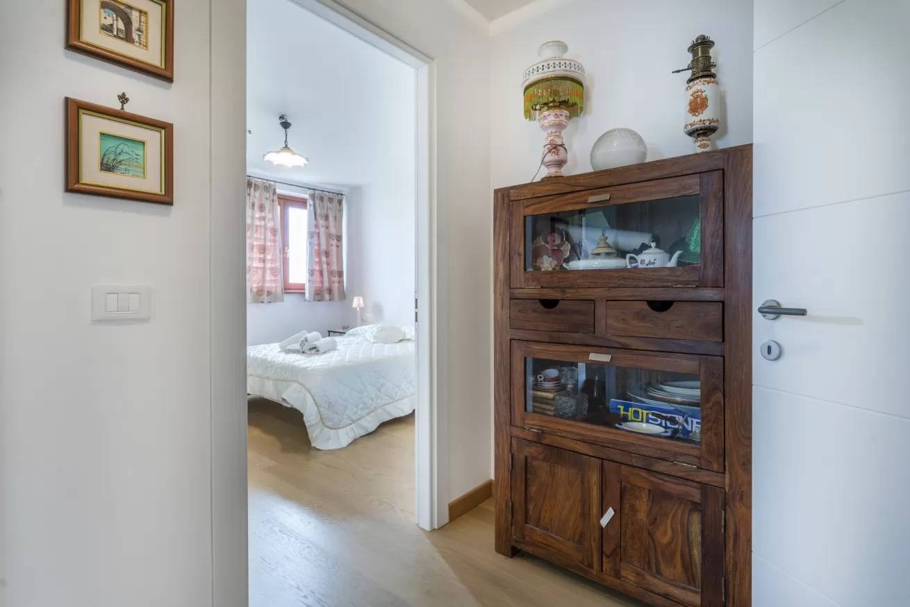 L'appartamento si sviluppa su una superficie di 70 metri quadri, con ampio terrazzo di 13 metri quadri che si affaccia sui campi da golf. E' composto da ingresso-cucina-soggiorno, bagno - wc, corridoio e due camere da letto.